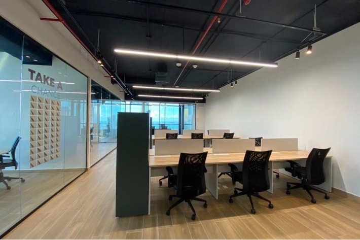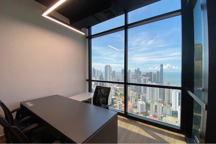 La oficina tiene 154 m2, se entrega con mobiliario, acabados y divisiones. El alquiler incluye la electricidad, el servicio de internet y mantenimiento. La oficina tiene vista panorámica a la ciudad.