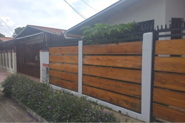 Esta vivienda cuenta con sólidos muros de concreto en el lindero posterior y ambos laterales, mientras que en la parte frontal se ha instalado una cerca que combina concreto, hierro y madera. Tanto en la cerca frontal como en el muro posterior, se han añadido elementos de seguridad de hierro. El techo, con su cubierta de zinc, ha recibido un mantenimiento completo, al igual que las canaletas.