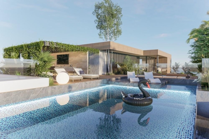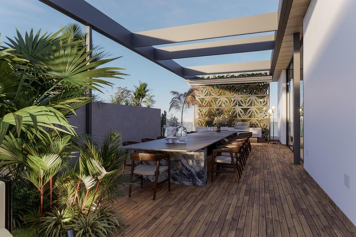 - Área social en planta baja que fusiona terraza y piscina con espejos de agua para momentos de relajación