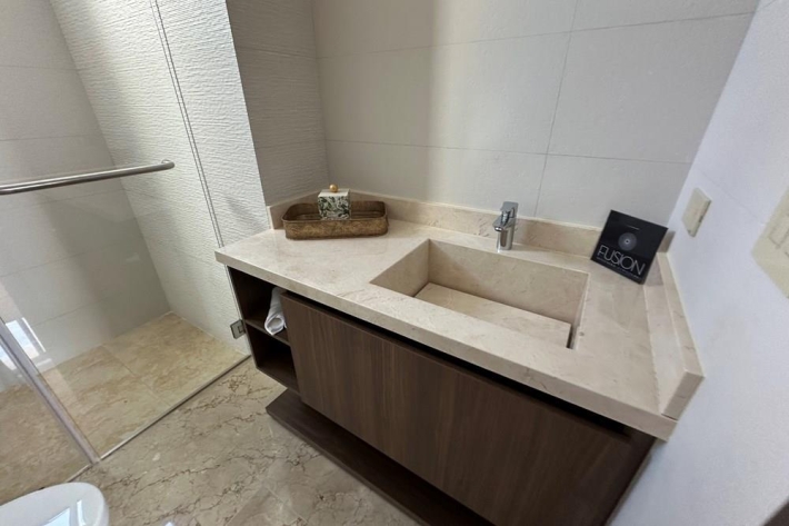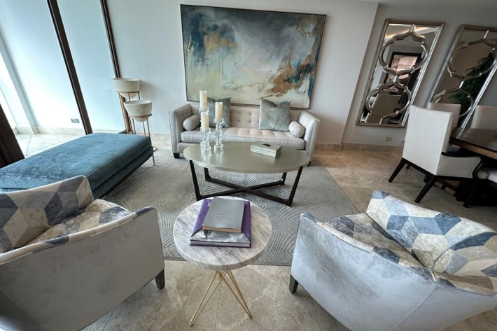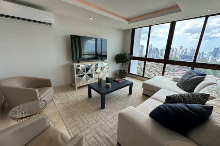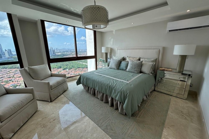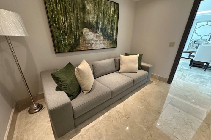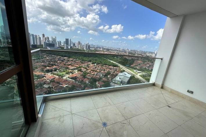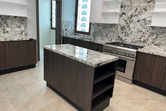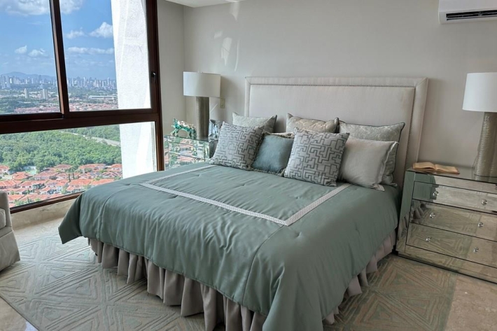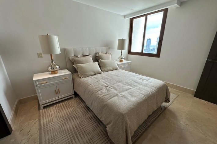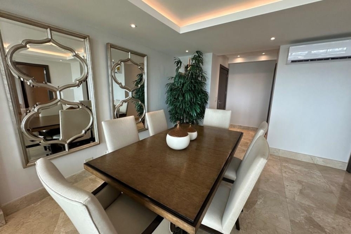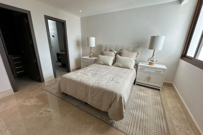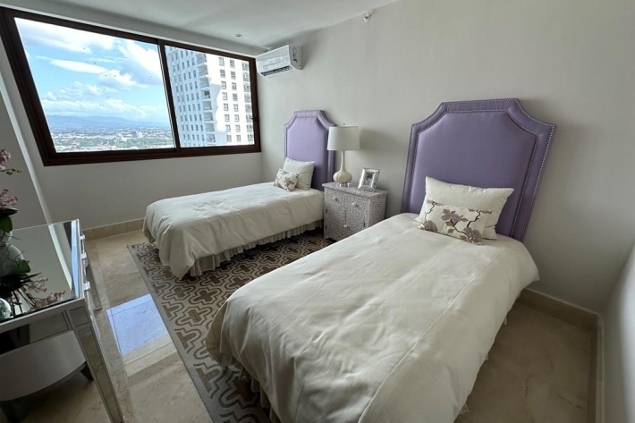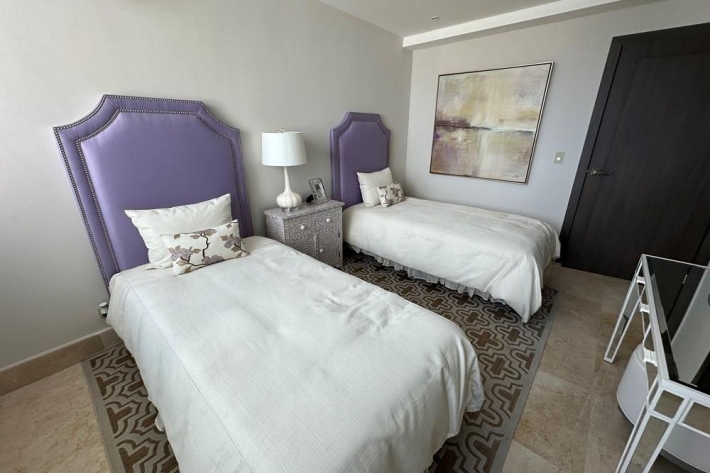 3 recámaras con 3 baños, walking closet en las 3 recámaras. Sala/comedor/den, baño de visita, cocina con área de lavandería y cuarto y baño de empleada. Segundo den en el pasillo hacia las habitaciones. Balcón con vista al mar y ciudad.