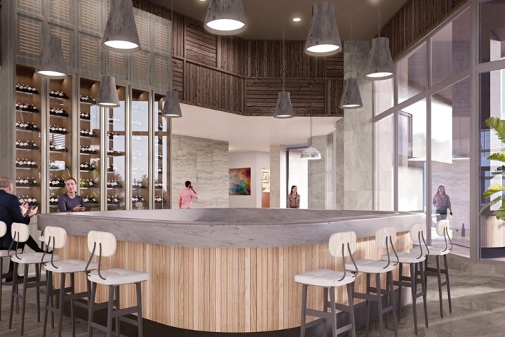 - Zona de bar y vinos con vistas hacia el verdor de Santa María Golf & Country Club