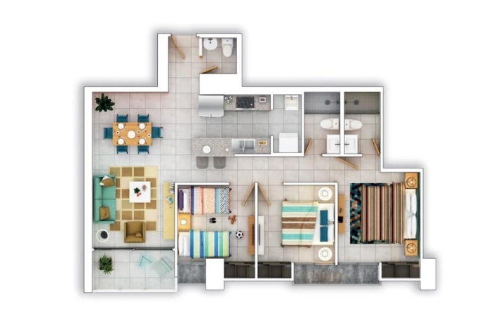 Este apartamento cuenta con una excelente distribución, diseñado para el mejor aprovechamiento de la luz solar y la comodidad de sus residentes.