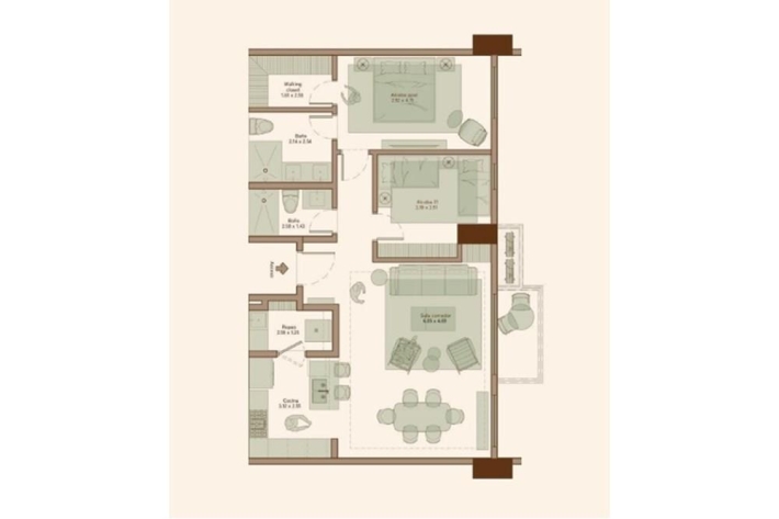 • Tipo E: 141.50m2, 2 habitaciones, 2 baños, estudio, terraza. Precio desde $481,100.