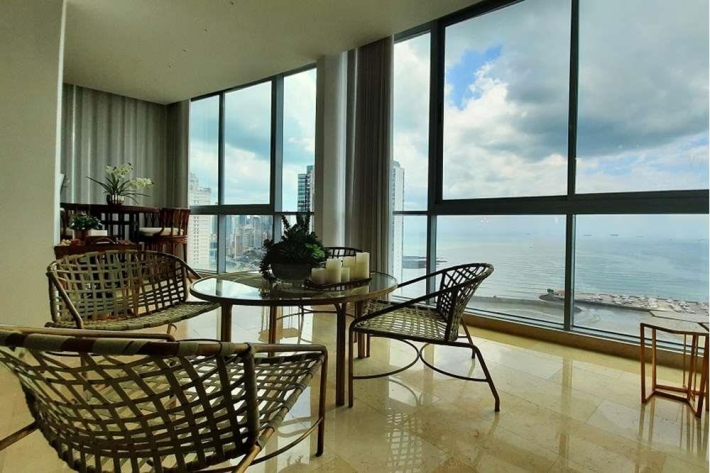 Espectacular Junior Penthouse de 395 m2, 3 recámaras, studio o 4ta recámara, den, sala, comedor, cocina, lavandería, cuarto y baño de empleada, balcón, 4 estacionamientos, 2 depósitos. El edificio cuenta con área social, piscina, cancha de squash, cuarto de juego de niños, lounge, seguridad 24 horas. Cuenta con una vista excepcional a la Avenida Balboa a pasos de la cinta costera. Sin lugar a dudas un apartamento que reúne todas las condiciones para vivir cómodamente.