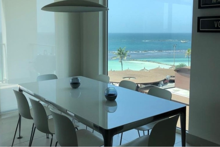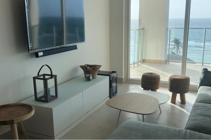 Este apartamento con vista al mar de 198 m², ofrece tres amplias habitaciones, tres baños, cuarto y baño de servicio, además de una cocina abierta que conecta con una amplia sala y comedor. Disfruta del gran balcón con vistas panorámicas al mar, perfecto para relajarse o entretener. El apartamento está completamente amoblado (excepto la cama de la recámara principal) e incluye línea blanca completa.