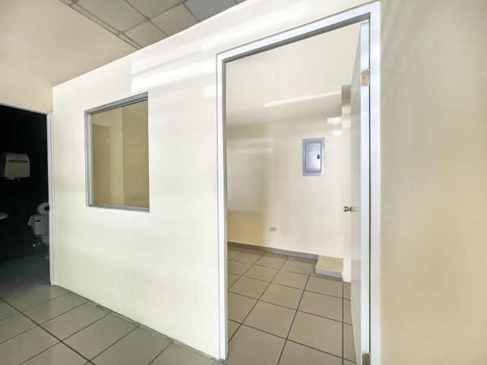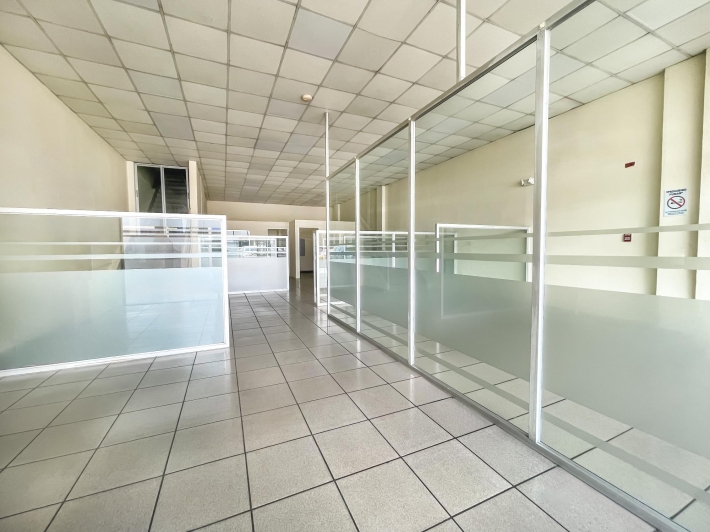 El local tiene un mezzanine con un metraje de 125.95m2 y planta baja 125.92. La planta baja cuenta con área de cubículos, área de atención al público, 2 oficinas, medio baño y 1 depósito. El mezzanine con un área de uso múltiple, cafetería, medio baño, 1 modelo de vivienda con sala, comedor, cocina, lavandería, 2 recámaras y 1 baño.