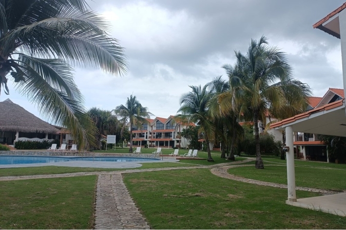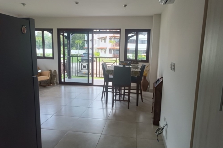 Venta de apartamento de 95.76 m2 y 125 m2 de terreno adicional para uso de jardín y entretenimiento. El apartamento consta de 3 recámaras, 2 baños, sala, comedor, cocina, lavanderia, 2 estacionamientos, guardia de seguridad 24 horas. Cuenta con área social con piscina para niños y adultos, gimnasio, área de fiestas, cancha de tenis. Mantenimiento $167. Este apartamento te brinda la comodidad de vivir en área cercana a la playa y con el entorno ideal para disfrutar en familia.