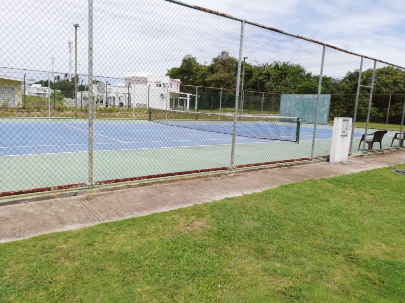 Lamparas solares y camaras de seguridad sistema controlados por celular. Tiene el cojunto casa club y cancha de tenis y el rio con cascada.