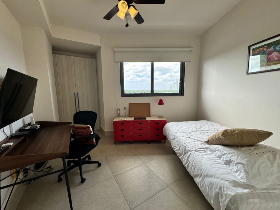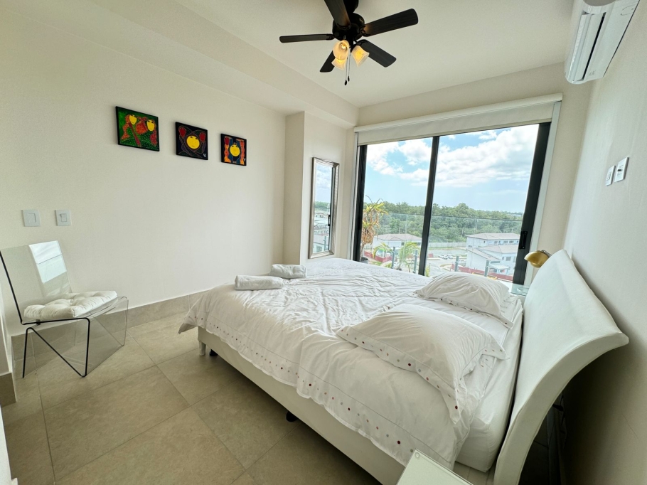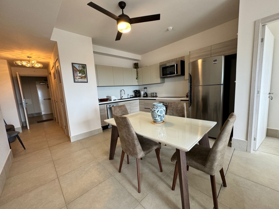 Este encantador apartaestudio se encuentra ubicado en la exclusiva zona de Santa María en la ciudad de Panamá. Con una ubicación privilegiada, este inmueble ofrece facilidades de acceso a las principales avenidas de la ciudad y se encuentra en una zona tranquila y segura. Su amplio terreno de 99 M2 le brinda un espacio cómodo y funcional con una construcción de 99 M2, permitiéndole a sus habitantes disfrutar de un área privada de la misma medida. Cada detalle ha sido cuidadosamente diseñado para garantizar una experiencia de vida agradable y confortable. El apartaestudio cuenta con 2 alcobas, ideales para una familia pequeña o una pareja que desee tener un espacio adicional para una oficina o estudio. Además, dispone de 3 baños completos, uno de ellos en la alcoba principal, lo que permite una mayor comodidad y privacidad para sus habitantes. El garaje, con espacio para un vehículo, es una comodidad adicional que no se encuentra fácilmente en la zona, permitiéndole a sus inquilinos tener su propio espacio de estacionamiento y mayor seguridad para su vehículo. En cuanto a sus características internas, este apartaestudio cuenta con suelos de cerámica y mármol, lo que le otorga un toque moderno y elegante a cada espacio. La vista panorámica desde las ventanas del apartamento ofrece una hermosa vista de la ciudad, brindando una sensación de amplitud y tranquilidad. Además, el inmueble se encuentra completamente amoblado, lo que lo hace ideal para aquellos que buscan mudarse de manera inmediata y sin preocupaciones. Cada mueble y accesorio ha sido seleccionado cuidadosamente para garantizar comodidad, funcionalidad y estilo.
