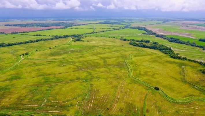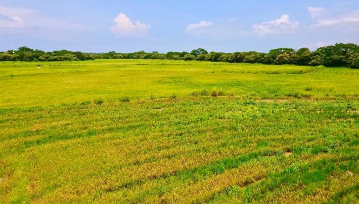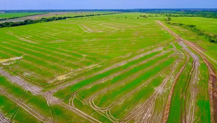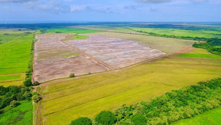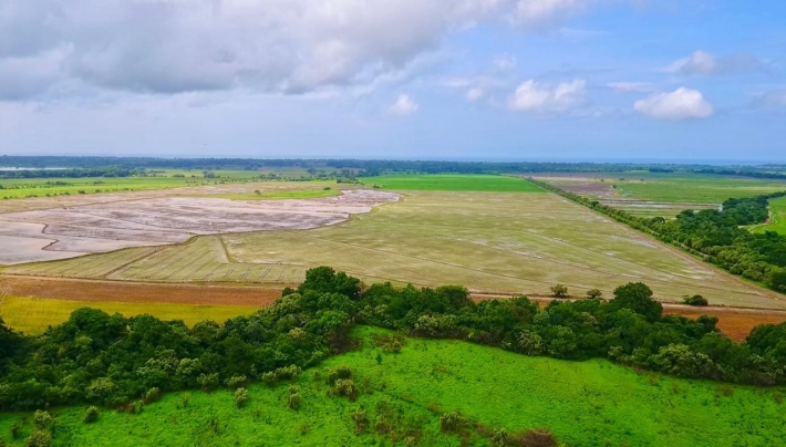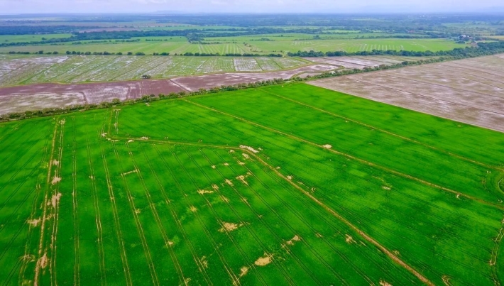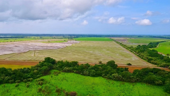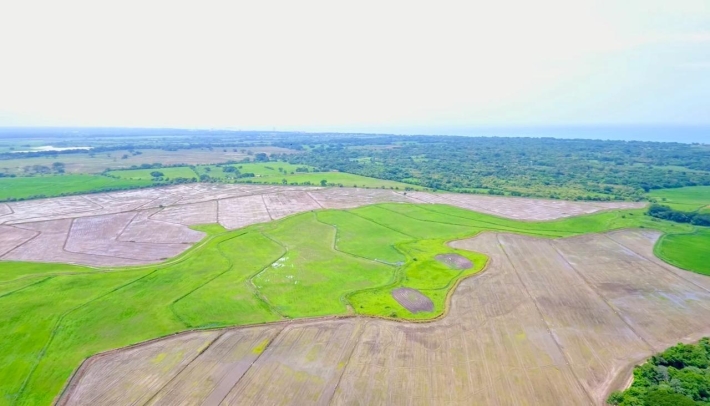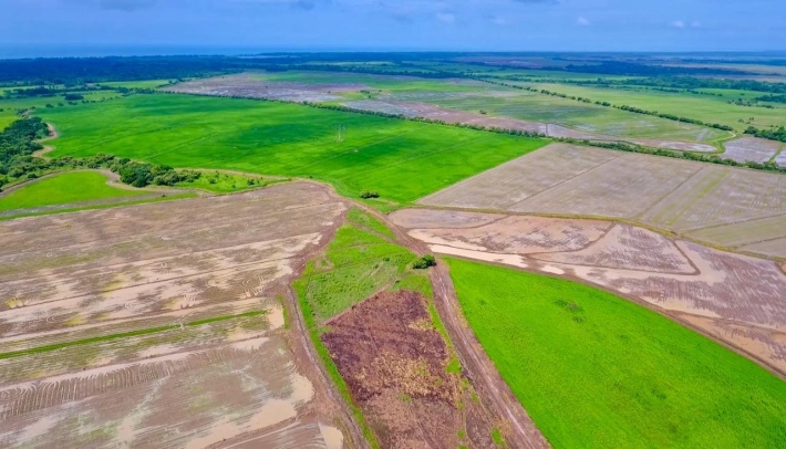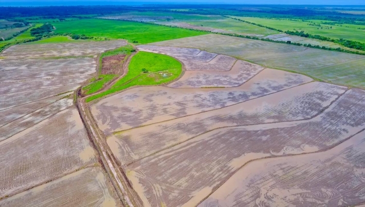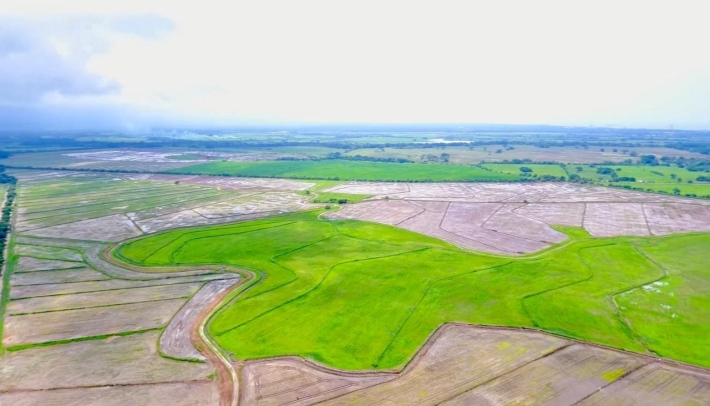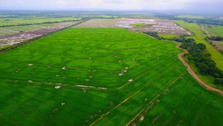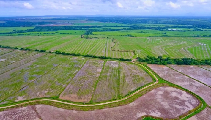 La superficie total de la finca es de 808 hectáreas de las cuales 650 hectáreas son sembradas (con disponibilidad de riego) y está en un 90% nivelada, con un programa de siembra mensual (se siembra arroz todos los meses el año, al igual que se cosecha arroz todos los meses del año). De esta forma se cultivan alrededor de 1,200 hectáreas con un rendimiento aproximado entre 115 quintales por hectárea, produciendo 80 quintales de arroz blanco por hora.