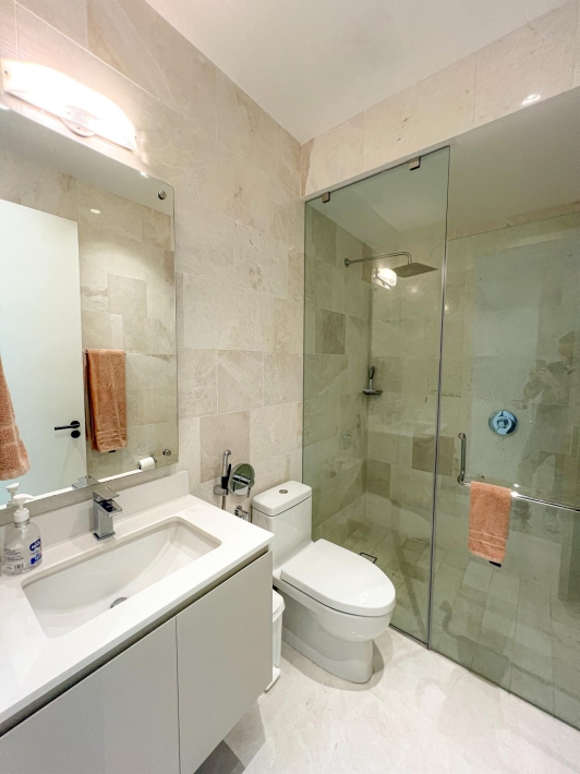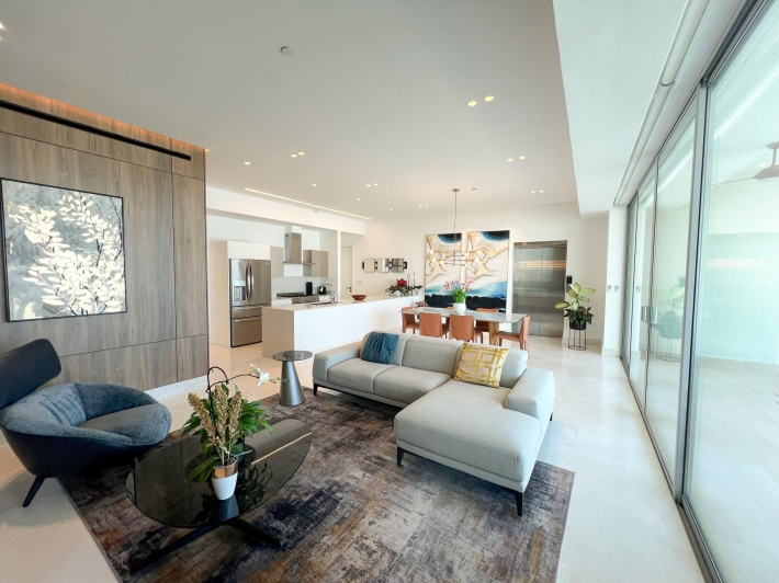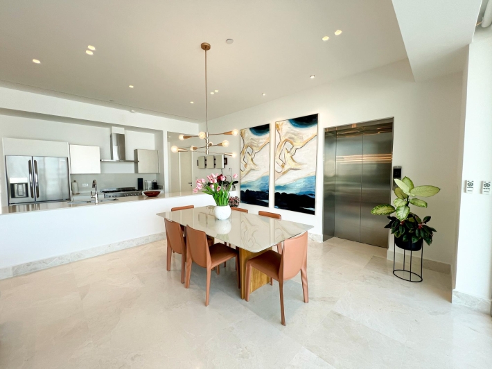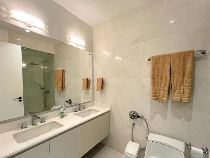Adopte el estilo de vida isleño con este espacioso apartamento de 180 m² en Beach Club Residences, ubicado en las serenas Ocean Reef Islands. Ubicada en el nivel 400, esta casa completamente amueblada presenta un diseño de concepto abierto, que conecta a la perfección las áreas de cocina, comedor y sala de estar con una gran terraza que ofrece impresionantes vistas al puerto deportivo e inunda el espacio con luz natural, perfecta tanto para la relajación como para el entretenimiento. Con 2 dormitorios y 2,5 baños, cada rincón de este apartamento está diseñado con elegancia moderna, con acabados de primera calidad y accesorios de alta calidad en todas partes. Salga y disfrute del entorno tranquilo de su propia isla privada, con acceso a comodidades de primer nivel, como piscina, área de barbacoa, terraza panorámica y gimnasio de última generación. Vivir en Beach Club Residences significa experimentar lo mejor de ambos mundos: la atmósfera pacífica de la isla combinada con la comodidad de estar a solo minutos de la ciudad de Panamá. Ya sea que se relaje en su terraza, disfrute de la piscina frente al mar o explore la vibrante ciudad, este apartamento ofrece un estilo de vida incomparable que combina a la perfección la comodidad, el lujo y la belleza natural.