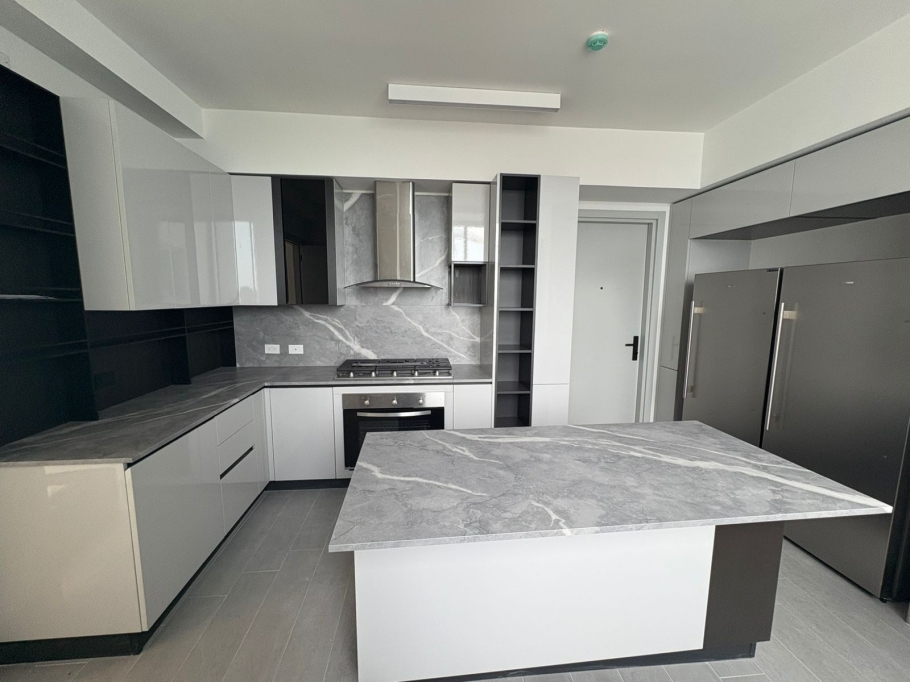 Sala, comedor, cocina italiana amplia con isla