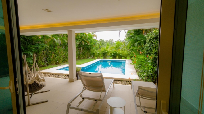 Disfrute de una vida de lujo y tranquilidad en este impresionante dúplex ubicado en la prestigiosa comunidad de Casamar en San Carlos. A solo minutos de Coronado, esta propiedad combina un diseño sofisticado con un estilo de vida sereno. Sumérjase en un mundo de elegancia con este impecable dúplex, perfectamente ubicado en la codiciada comunidad privada de Casamar. Con 248 m² de espacio habitable cuidadosamente diseñado, esta casa es un verdadero santuario. La planta principal cuenta con un amplio dormitorio principal con baño en suite, que brinda máxima privacidad y comodidad. La cocina de concepto abierto es una obra maestra, equipada con electrodomésticos de alta gama y acabados importados que combinan a la perfección estilo y funcionalidad. Integrada a la perfección con la sala de estar y el comedor, el espacio le invita a recibir invitados con facilidad. Grandes puertas de vidrio conducen a una terraza privada, donde le espera una espectacular piscina, en medio de un exuberante jardín paisajístico. En la planta superior, dos dormitorios adicionales comparten un baño moderno, lo que la hace perfecta para vivir en familia o recibir invitados. La propiedad también incluye un cuarto de servicio con baño privado, que ofrece mayor comodidad y flexibilidad. Los muebles importados realzan el ambiente lujoso de la casa, y un regulador de voltaje completo, aires acondicionados renovados y un sistema de seguridad brindan tranquilidad. Con exención de impuestos hasta 2027 y sin alquiler, esta casa está lista para mudarse. Características principales: Servicios: Piscina privada, exuberante jardín, cuarto de servicio y muebles importados. Beneficios adicionales: Cámaras de seguridad, sistema de alarma, regulador de voltaje y aires acondicionados renovados.