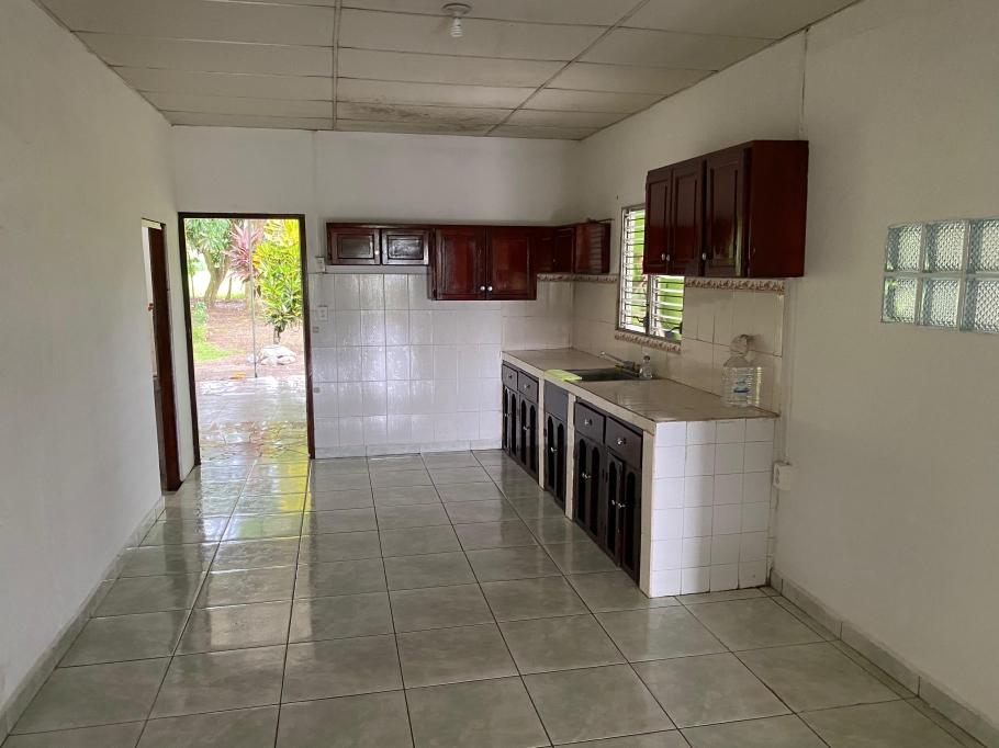 La casa existente ofrece una base sólida con amplios espacios, aunque requiere renovación. Cuenta con una sala de estar con cocina abierta, dos baños, cuatro dormitorios y terrazas en la parte delantera y trasera de la vivienda.