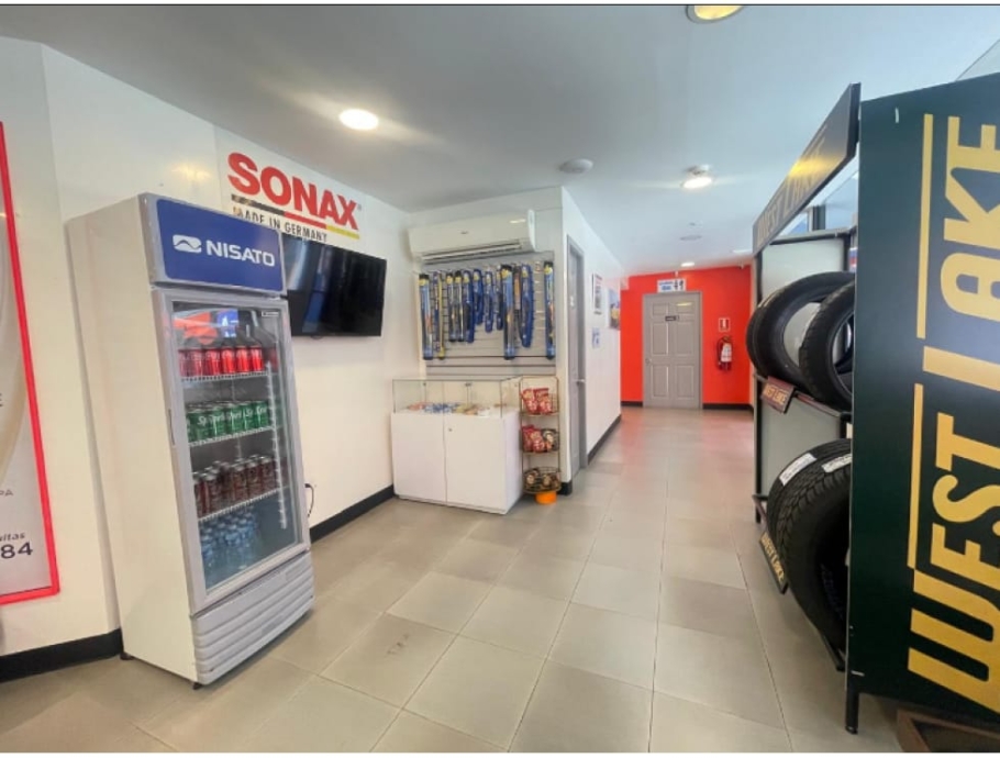 El local dispone de 2 estacionamientos propios. Además, cuenta con un lava auto con capacidad para 8 autos bajo techo y un área de detailing con 4 puestos cubiertos.