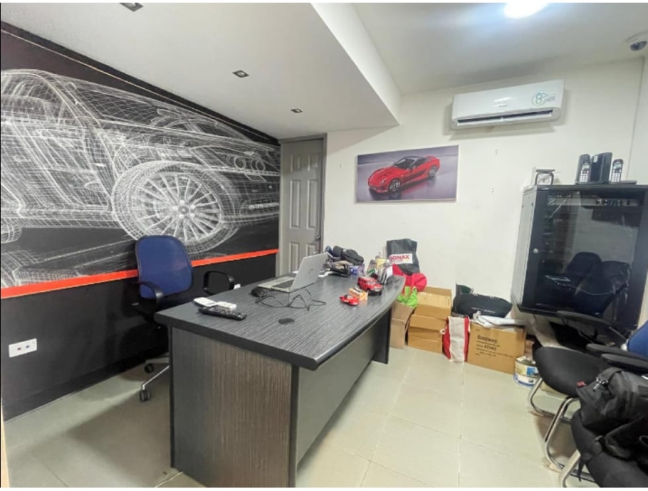 Incluye cuarto de depósito, 2 baños adicionales, área de llantería y mecánica. También cuenta con una chapistería con depósito, zona de lavado de chasis, banco de enderezado y espacio para 6 autos.