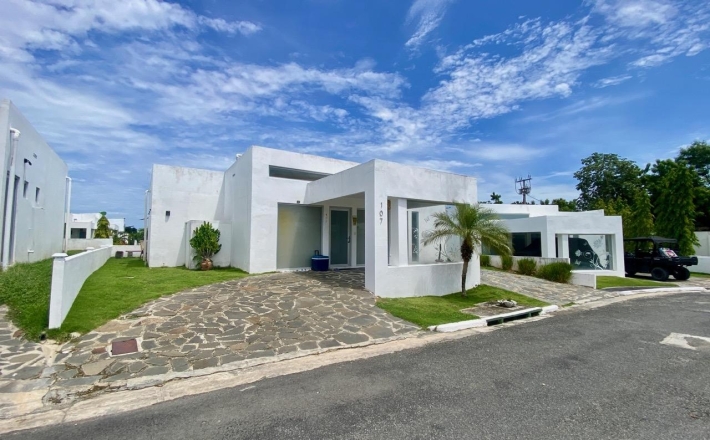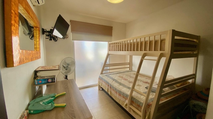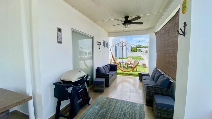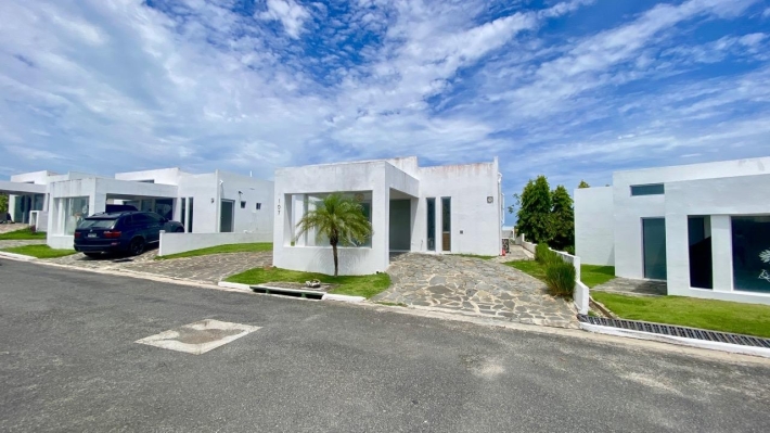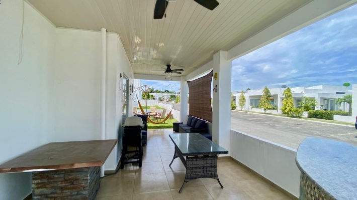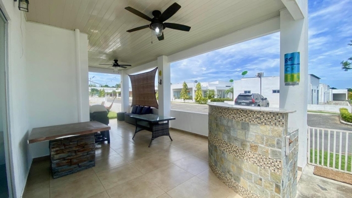 Casa de 3 recamaras en un bonito complejo privado ubicado en la zona de Bijao (Río Hato), cerca de la famosa Playa Bijao. LA UBICACIÓN Ubicado en la zona de Río Hato, se encuentra el acogedor complejo de playa Ibiza Beach Residence. El complejo se divide en dos secciones, con un total de aproximadamente 150 unidades. Todas las casas son de una sola planta, con un pequeño jardín. Hay 4 piscinas distribuidas en las 2 áreas de la residencia. Y la playa está a solo 10 minutos del complejo. LA CASA Esta casa de playa de 3 recamaras está construida sobre un terreno de 229 metros cuadrados, con una superficie total de 100 metros cuadrados. Se compone de la siguiente manera: •Sala de estar con cocina abierta •Recamara principal con baño en suite y acceso a la terraza trasera •Segunda recamara •Tercera recamara •Baño independiente •Lavandería •Deposito de jardín con tanque de reserva de agua y bomba de presión •Terraza techada trasera con zona de barbacoa y bar •2 plazas de aparcamiento EL PROYECTO En muy buen estado, completamente amueblada, esta encantadora casa de 3 dormitorios será el refugio perfecto del bullicio de la ciudad para usted y su familia. Además, se encuentra a pocos pasos de una bonita piscina con tumbonas, ideal para disfrutar de un baño cerca de la casa.