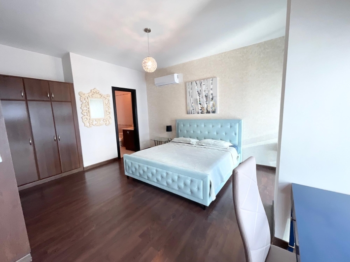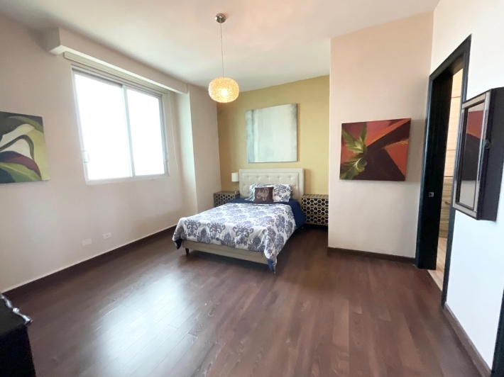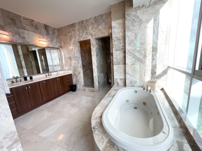 En alquiler espectacular apartamento full amoblado en el exclusivo P.H. Ocean Two, Costa del Este, con 410 m² distribuidos en 4 recámaras, 4.5 baños, amplia sala y comedor, den, desayunador, cocina equipada, lavandería, C/B/S y 3 estacionamientos. Ofrece aire central en las áreas sociales y la recámara principal, además de aires inverter en las secundarias. Este icónico edificio brinda amenidades de primer nivel como piscina, jacuzzi, sauna, gimnasio, cine, canchas deportivas, área de BBQ, salón de fiestas y mucho más, ideales para un estilo de vida de lujo y confort en una ubicación privilegiada de la ciudad.