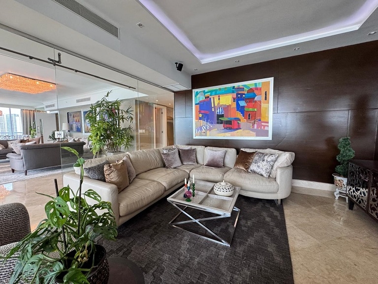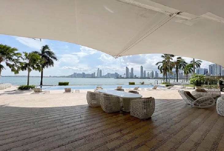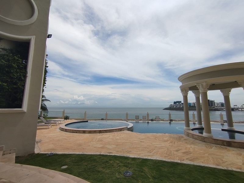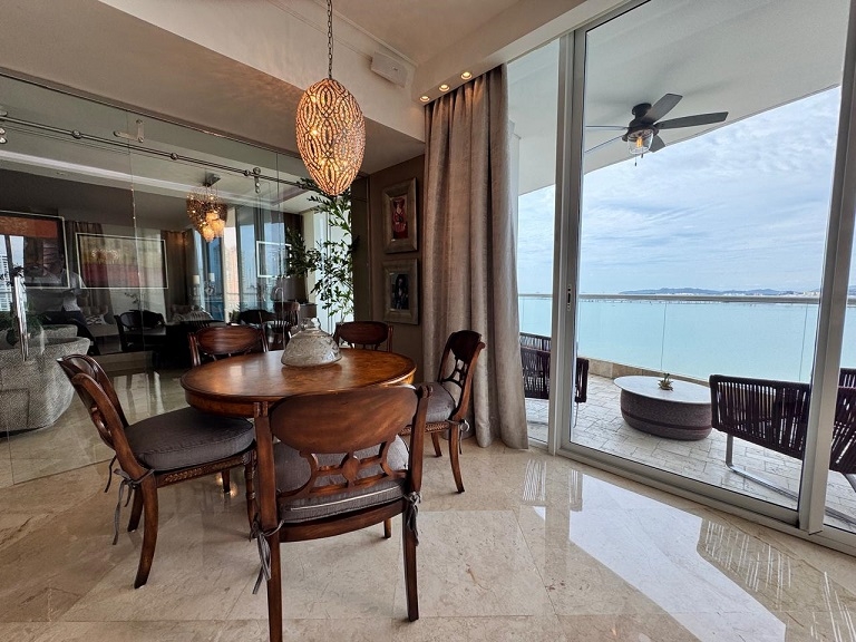 Alquiler de apartamento totalmente amoblado en The Point, Punta Paitilla. El apartamento tiene 500.98 mts, terraza, sala, comedor, den, sala de estar, 3 recámaras, 3 baños, 1/2 baño de visitas, amplia cocina, lavanderia, cuarto y baño de servicio, 3 estacionamientos, 1 depósito, seguridad 24 hrs, área social con piscina climatizada, spa, sauna, baño de vapor, gimnasio, área de juego para niños, salón de fiestas, valet parking.