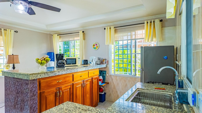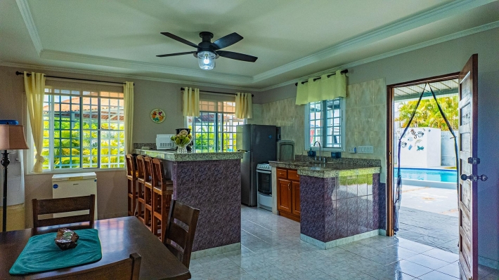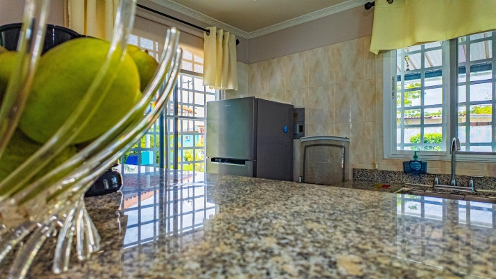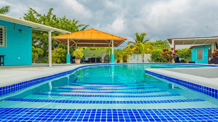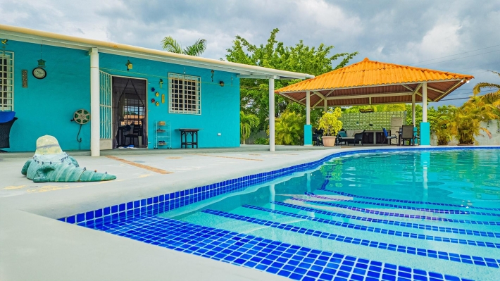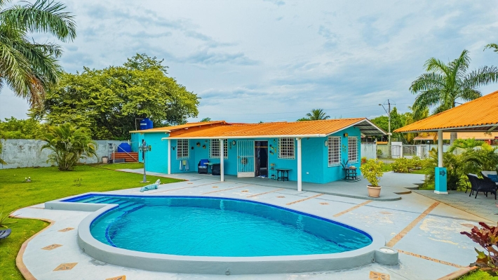 Casa de playa en venta en Coloncito, Gorgona, a solo 5 minutos de Coronado. Esta propiedad ofrece un amplio terreno plano de 1400 m² con múltiples estructuras funcionales, una acogedora zona de piscina y espacios exteriores diseñados para la comodidad y el entretenimiento. La casa principal cuenta con dos dormitorios y dos baños. En el interior, la distribución abierta incluye sala, comedor y cocina con encimeras de granito y gabinetes superiores e inferiores. La casa se abre directamente a una terraza cubierta que conecta con la piscina, creando una conexión práctica y cómoda entre las zonas de estar interior y exterior. La piscina está ubicada en el centro, con senderos pavimentados y espacios para sentarse y relajarse. Junto a ella, un bohío con cocina exterior completa es ideal para cocinar y comer al aire libre. También hay un gran gazebo cubierto que actualmente se utiliza como zona de estar con parrilla y encimera integradas, lo que añade un espacio útil para reuniones. La estructura independiente ofrece flexibilidad, ya que funciona como habitación de invitados, trastero o casita. Toda la propiedad está cercada. Un servicio de mantenimiento mensual de aproximadamente $150 cubre la jardinería y el cuidado de la piscina.