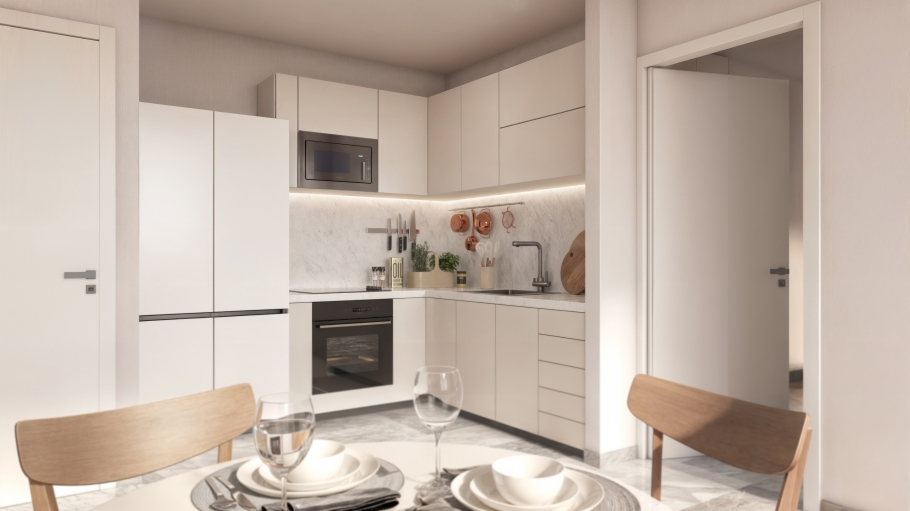 Además, cuenta con grifería alemana TEKA (con más de 20% de ahorro de agua), paneles solares para reducir el consumo energético, e implementación de sistemas de construcción limpia. El proyecto está registrado para la certificación EDGE, reafirmando su compromiso con la sostenibilidad y la eficiencia ambiental.