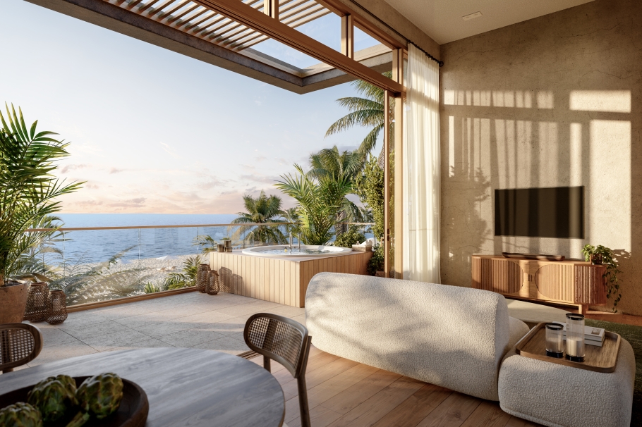 Las residencias cuentan con amplios espacios interiores, acabados de alta gama y balcones que permiten disfrutar del paisaje costero en todo momento. Cada detalle ha sido cuidadosamente pensado para ofrecer una experiencia de vida relajada y sofisticada frente al océano.