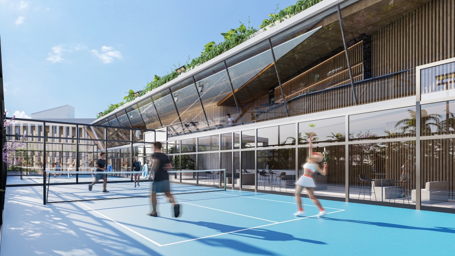 • The Racquet Club – Canchas de pádel y pickleball con vista al mar, espacios para eventos deportivos y un moderno sports bar de dos niveles.