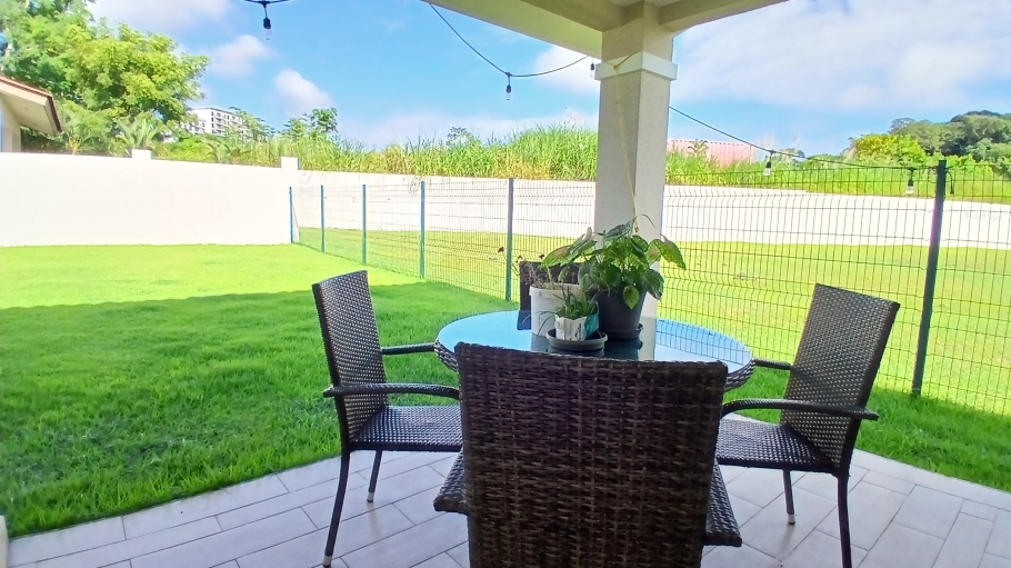 En Alquiler– PH Bosques del Pacífico, Panamá Pacífico casa unifamiliar de 321 m2 (3,400 sq ft) de 4 recamaras, 2.5 baños, family rooom; y cuarto y baño de empleada (CBE). Tambien cuenta con Terraza y gran jardin cercado.