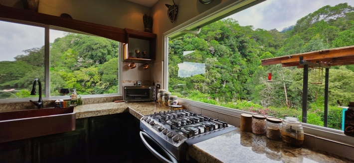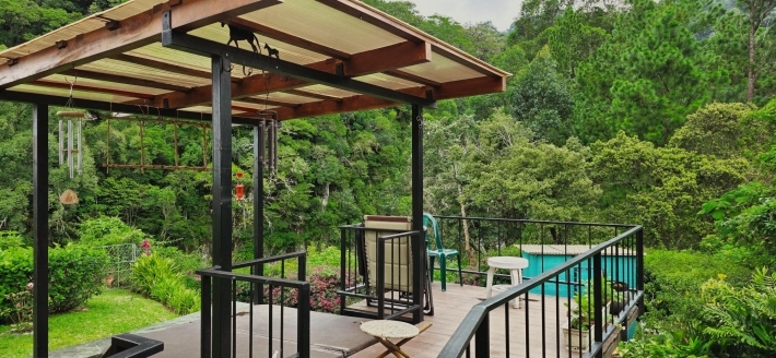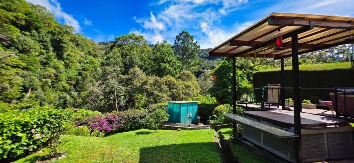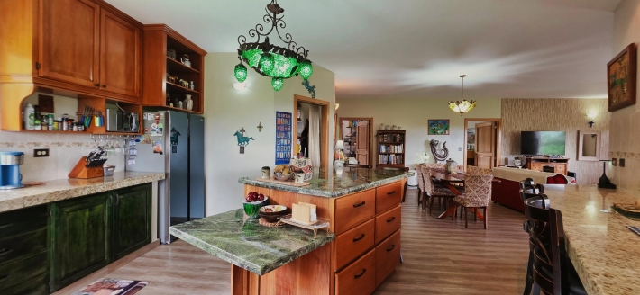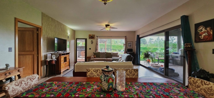 Descubra esta espectacular residencia de montaña ubicada en Paso Ancho, Tierras Altas, una de las zonas más codiciadas de Chiriquí. Situada a 1,524 metros sobre el nivel del mar, esta propiedad ofrece un clima fresco durante todo el año, aire puro, tranquilidad y seguridad en una exclusiva comunidad cerrada y bordeada por el rio Chiriqui Viejo. La casa ha sido completamente remodelada bajo estándares norteamericanos en los últimos 6 años, combinando diseño moderno con el encanto natural de la región. Características principales: Terreno: 0.61 acres (2,474 m²) con jardines tropicales y frutales. Construcción total: 316 m² (3,400 ft² aprox.). Área cerrada (habitable): 180 m² (1,938 ft² aprox.). Habitaciones: 3 | Baños: 4. Terraza cubierta con vistas impresionantes al bosque, río y montañas. Amenidades destacadas: Apartamento independiente. Internet de alta velocidad. 2 estaciones de energía de respaldo. Acceso para personas con movilidad reducida. Jacuzzi cubierto para 6 personas. WC exterior. Bodega/depósito de 10 × 12 pies. Lavandería separada. Beneficios de la ubicación: Seguridad: comunidad cerrada con privacidad y tranquilidad garantizada. Cercanía: a pocos minutos del centro de Volcán, con supermercados, bancos, restaurantes, clínicas, farmacias y más. Naturaleza viva: colibríes, tangaras y flora tropical en un clima primaveral todo el año. Estilo de vida: perfecta para retiro, segunda residencia o vida familiar en un entorno de montaña con todas las comodidades modernas.