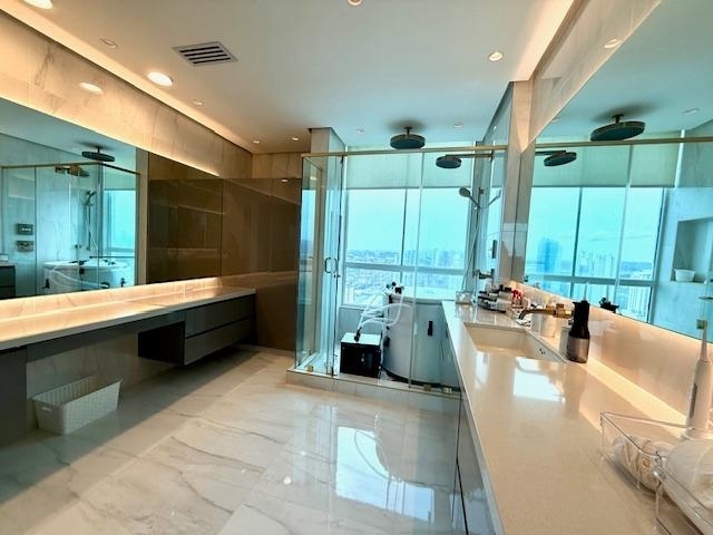 Apartamento en venta en Vitri Tower, super lujoso, con muchas mejoras, calidad premiun, solo con linea blanca en Costa del Este, frente al mar con espectacular vista, dos apartamentos por piso. 375 m2, óptima. distribucion. 3 recamaras con sus baños Amplia sala comedor, Den balcón sala familiar Cocina con area desyunador Baño de visita Lavanderia Cuarto y baño de servicio, 3 estacionamientos. Piso de mármol,todos los acabados europeos, de marcas premiun, área social completa con piscina de agua temperada y tobogan, salón de fiesta, área de juegos para los niños y adolescentes, canchas de futbol, basketball, squash, racquetball, sauna, baño de vapor, bohios, y gimnasio equipado con equipo de primera, elevadores de alta velocitad, área social tipo resort. Edificio super exclusivo, torre totalmente residencial más alta de panamá con solo 90 apartamentos. Ave. paseo del Mar, Costa del Este. a pasos de town center mall, hospital, consultorios medicos, supermercados, colegios, restaurantes etc.