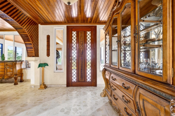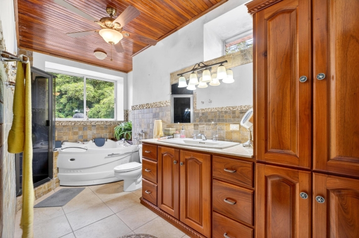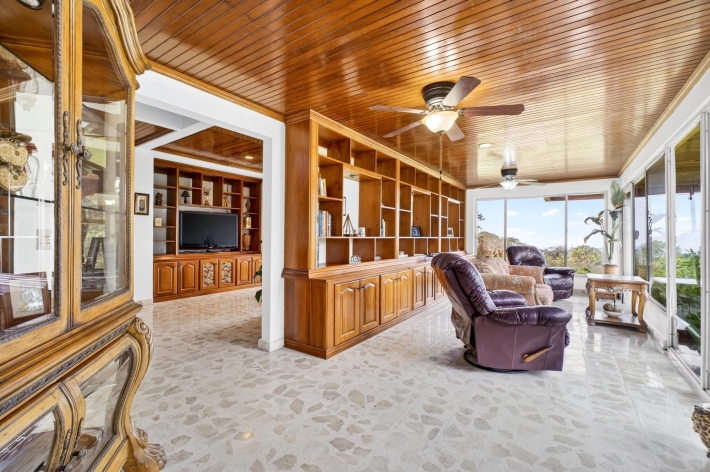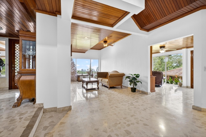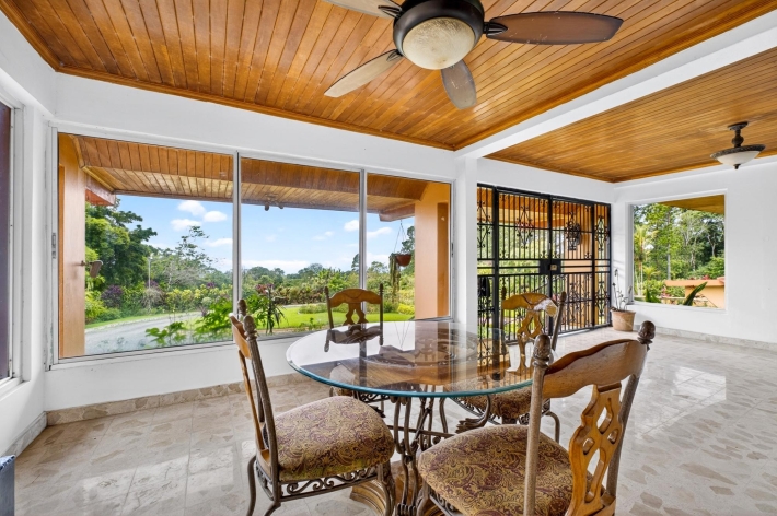 Ubicada a aproximadamente 1170–1250 metros de altura en las frescas tierras altas de Potrerillos Arriba, Finca La Pagoda es una finca histórica de 13,8 hectáreas que ofrece concesiones de agua excepcionales, amplia infraestructura y un sólido potencial de inversión a largo plazo. Originalmente encargada como residencia privada en la montaña por un exjefe de estado y posteriormente albergada por dignatarios internacionales, la propiedad conserva un discreto origen histórico, a la vez que se centra en su valor futuro. La residencia principal, totalmente restaurada, de 4 dormitorios y 4 baños, ofrece aproximadamente 467 m² de espacio habitable y 630 m² de espacio bajo techo, con arquitectura de inspiración japonesa, techos de madera restaurados, murales pintados a mano, singulares suelos de terrazo, cocina gourmet, biblioteca, estudio/oficina y vistas panorámicas de las tierras altas. Las características de la inversión incluyen derechos permanentes de concesión de agua de manantial natural, sistema de riego completo, generador auxiliar, suelo volcánico fértil y múltiples estructuras de soporte. Un pabellón para eventos de 130 m² con bar, cocineta y capacidad para 70 invitados ofrece un potencial de ingresos inmediato. Las mejoras adicionales incluyen una casa para invitados o cuidadores, un garaje para cuatro autos con taller y un invernadero profesional. Ubicado estratégicamente entre Boquete y Volcán, es ideal para hotelería, retiros de bienestar, agricultura especializada o inversión en tierras.