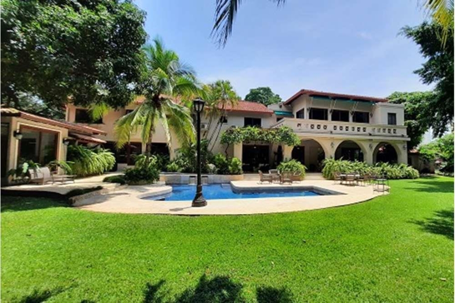 Lujosa casa de 1458 m2 de construcción en un terreno de 3,017 m2. La casa consta de dos plantas, 6 habitaciones con sus baños, dos salas de estar, estudio, den, amplia cocina, 2 habitaciones de servicio con baños. Adicional tiene una casa de huéspedes con cocina, habitación y baño. Tiene amplios jardines con iluminación, piscina, jacuzzi, tanque de agua, depósito, pisos de mármol, aire central para el área social. El vestíbulo tiene 8 mts de altura y el área social 4.5 metros de altura, pisos de mármol. Esta casa es única con el metraje de terreno y brinda todas las comodidades de una casa de lujo.