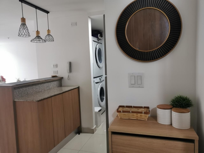 Ubicado en un piso alto del PH Worldwide Plaza, este apartamento amoblado ofrece comodidad, buena distribución y una ubicación estratégica en plena Vía España. A pasos de la estación del metro, supermercados, bancos, comercios y todo lo que necesitas en tu día a día. Características del apartamento: • 60 m² • 2 recámaras • 2 baños • Balcón • 1 estacionamiento • Piso alto • Amoblado Amenidades del PH: • 2 piscinas con vista infinita (adultos y niños) • Gimnasio completamente equipado • Área social amplia y ventilada • Salón de fiestas • Juegos infantiles • Terrazas • Estacionamientos para visitantes • Seguridad 24/7 • Tanque de agua • Planta eléctrica Alquiler: $900 Vivir en Vía España te garantiza una ubicación privilegiada, rodeada de comercios, tiendas, supermercados y entidades bancarias, sumado al lujo, confort y conveniencia que ofrece este PH.