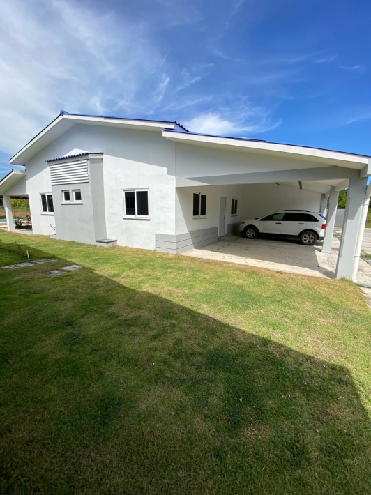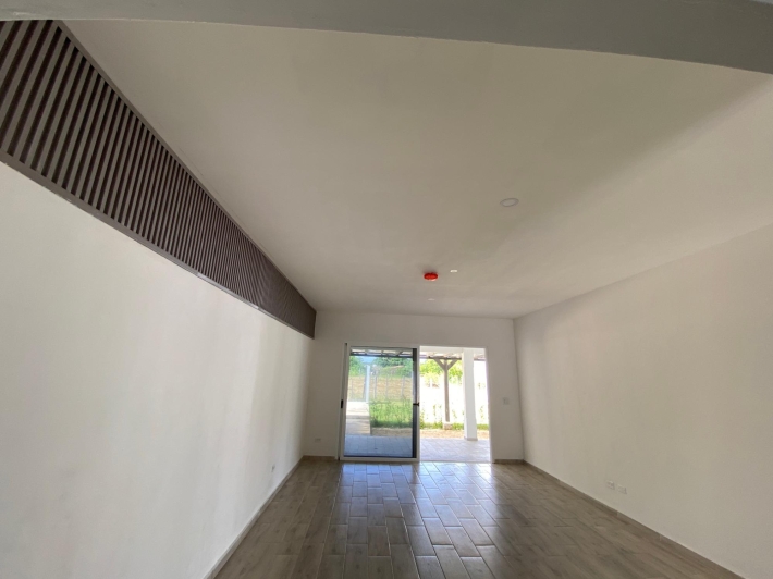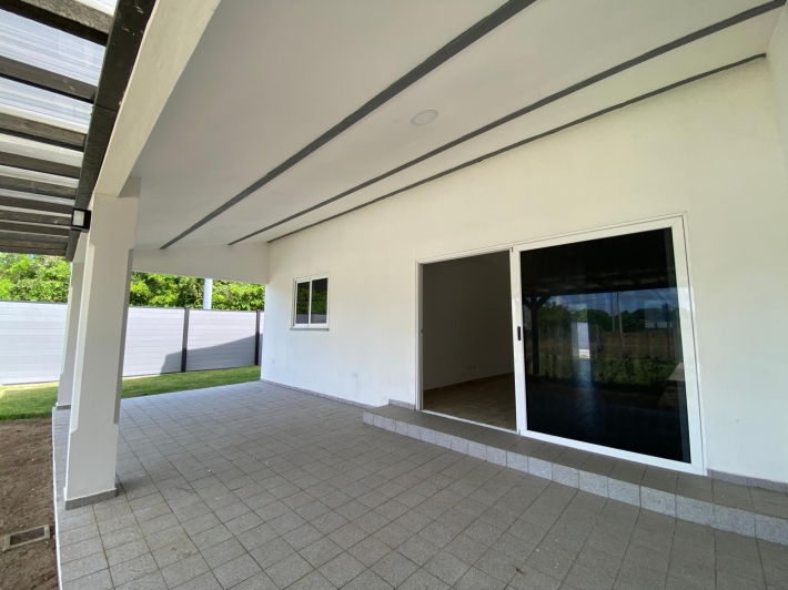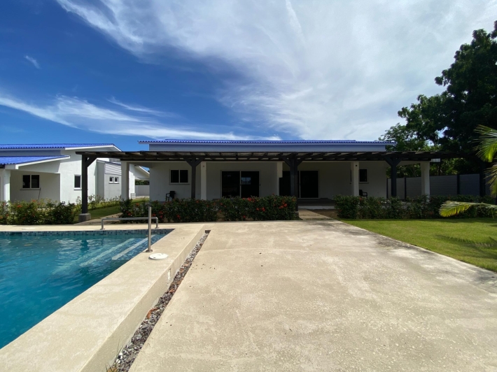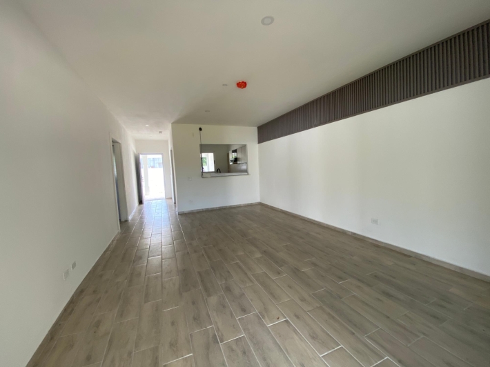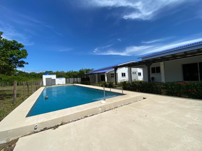 Esta casa de 2 dormitorios y 2 baños se encuentra en Punta Chame, Panamá Oeste, una península conocida por su largo tramo de playa, costa abierta y fácil acceso por carretera desde la Ciudad de Panamá y pueblos cercanos como Chame y Coronado. La propiedad tiene aproximadamente 189 m² de construcción y forma parte de un pequeño desarrollo con piscina compartida y áreas verdes. Características de la cocina y el interior La cocina está equipada con gabinetes, una estufa empotrada, horno y espacio de almacenamiento. Los dormitorios incluyen armarios empotrados y los baños tienen acabados de cerámica estándar. Los materiales utilizados en toda la casa son adecuados para las condiciones costeras, priorizando la durabilidad y el fácil mantenimiento. Áreas al aire libre y servicios compartidos El desarrollo ofrece una piscina compartida ubicada entre las casas, con senderos pavimentados y áreas plantadas. La propiedad está cercada, lo que define cada lote y lo separa del terreno abierto adyacente. La terraza ofrece un área al aire libre que se puede usar durante todo el año, adecuada para comer, sentarse o instalar una pequeña parrilla. El espacio del jardín es plano y manejable. Cerca de la playa. Una de las principales características de esta casa es su ubicación a pocos pasos de la playa. Los residentes pueden caminar directamente hasta la orilla, donde el terreno se abre a una amplia playa de arena típica de Punta Chame. La playa se utiliza para actividades como caminar, nadar y practicar deportes acuáticos, según la temporada.