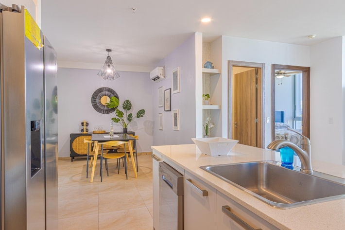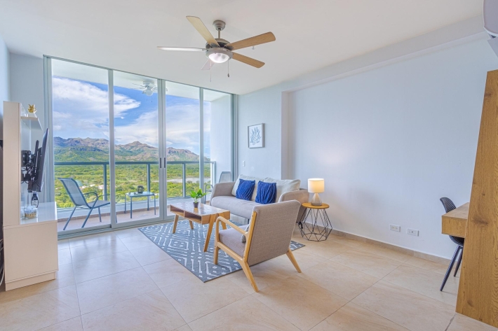 Esta es una oportunidad única para adquirir un condominio en un piso alto en Royal Palm, Gorgona, ubicado en el piso 23, el segundo más alto del edificio, donde la disponibilidad es extremadamente limitada. Con orientación este, la unidad disfruta de un ambiente más fresco, hermosa luz natural e impresionantes vistas al mar y a la montaña, todo ello sin el intenso calor de la tarde. Actualmente configurado como un espacioso apartamento de una habitación, su distribución permite una fácil conversión a dos habitaciones, lo que lo convierte en una excelente opción para compradores o inquilinos que buscan flexibilidad, valor añadido o un futuro atractivo. El condominio está completamente amueblado y listo para entrar a vivir, listo para ocupación inmediata o para generar ingresos por alquiler. Royal Palm sigue siendo una de las comunidades frente al mar más codiciadas de la zona, conocida por su acceso directo a la playa, una alta demanda de alquileres y una administración consolidada. Las unidades en pisos altos son especialmente difíciles de encontrar, lo que convierte a esta propiedad en una excepcional oportunidad de inversión, casa de vacaciones o residencia permanente. Ya sea que esté buscando adquirir una rara unidad de gran altura o generar ingresos a partir de un edificio frente al mar probado, este condominio en el piso 23 ofrece vistas, flujo de aire y valor a largo plazo que son cada vez más difíciles de conseguir.