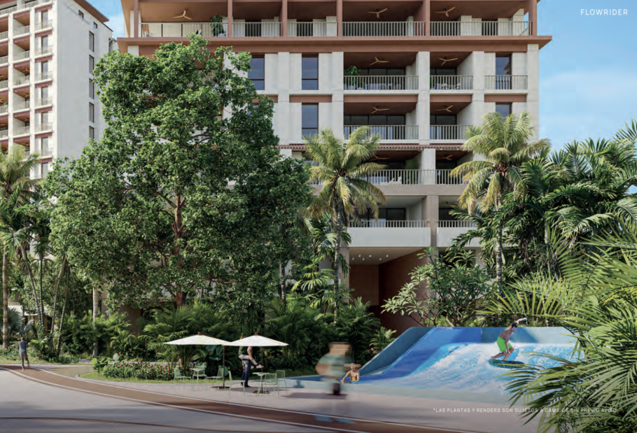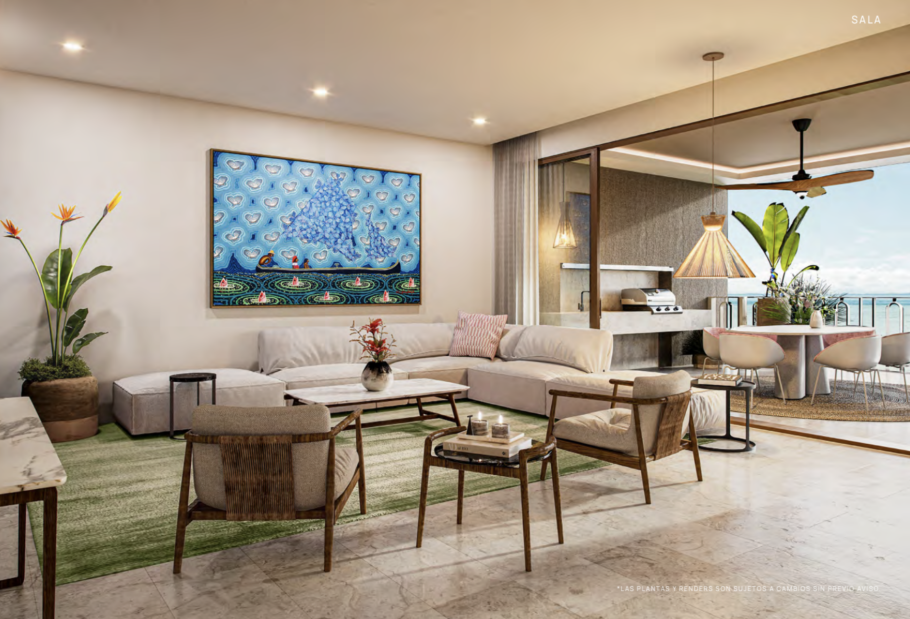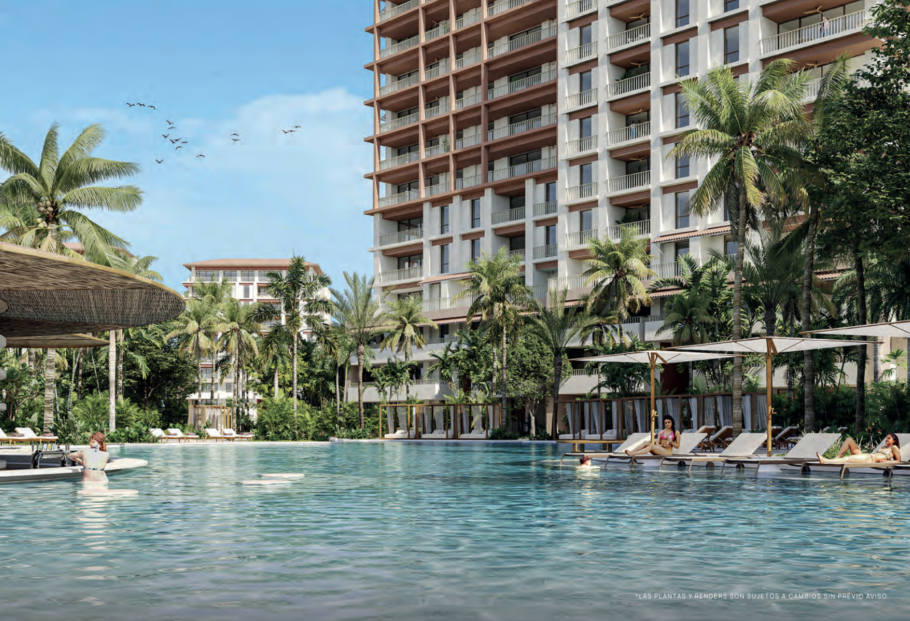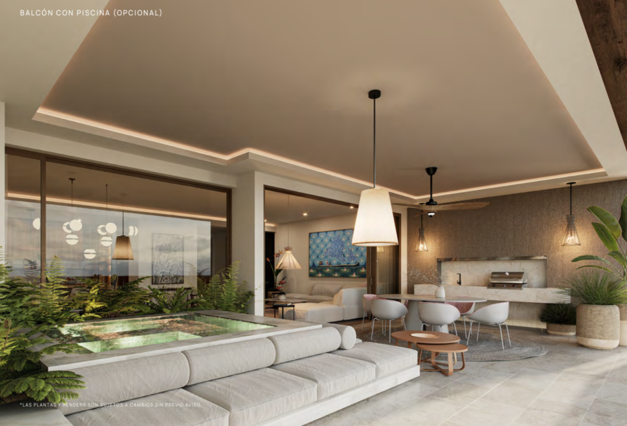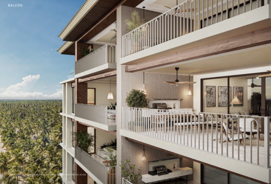 Terrazas profundas diseñadas para disfrutar la brisa marina (opción de piscina privada en balcón en modelos seleccionados).