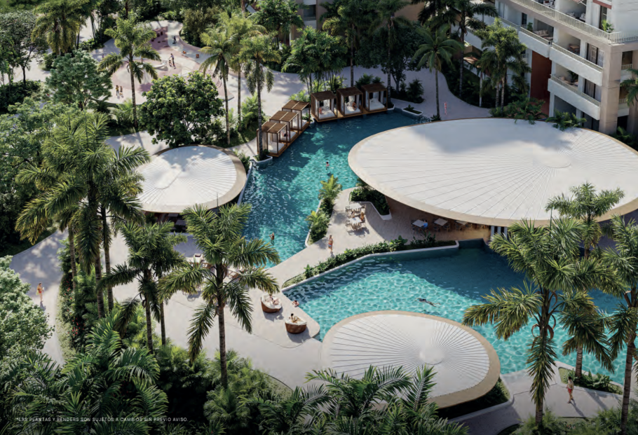 Piscinas Infinitas: Múltiples espejos de agua para adultos y niños con áreas de solárium.
