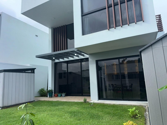 ¿Busca lujo, sostenibilidad y una inversión donde no tenga que mover ni un dedo? Le presentamos una oportunidad única en Riverwalk Green City: la Villa Modelo Granate, completamente remodelada y equipada por su dueño original. ¡Supera la versión estándar del proyecto! Esta es la fusión perfecta entre la tranquilidad de la Ecomunidad Green City y el confort de un hogar hecho a la medida. Esta villa se vende LLAVE EN MANO, lista para mudarse, con mejoras que añaden funcionalidad y sostenibilidad que no encontrará en otra propiedad: Paneles Solares Instalados: Disfrute de un ahorro significativo en su consumo eléctrico desde el primer día. ¡Una adición que el modelo original no incluye! Cocina Ampliada y Moderna: Más gabinetes, organización superior, y un diseño contemporáneo. Se incluye TODA la Línea Blanca de alta gama. Techo Exterior Adicional y Paredes Laterales Construidas: Mayor espacio y privacidad para su terraza y patio. A un Paso de la Casa Club: Con Gimnasio equipado con áreas tanto indoor (bajo techo) como outdoor (al aire libre). Canchas: Canchas de fútbol, baloncesto, pádel y canchas polideportivas. Piscinas: Piscina para adultos con zona de relajación y piscina para niños con juegos de splash. Bienestar: Spa, jacuzzi y áreas de yoga Además podrás disfrutar de: Skate Park: Área dedicada para patinaje. Parques Infantiles: Juegos seguros para niños de diversas edades. Dog Park: Parque exclusivo para perros. Petting Zoo: Una zona de contacto con animales pequeños, ideal para familias. Distribución de Lujo y Espacio Funcional Diseñada para la familia moderna que valora la privacidad y el espacio: Segundo Nivel de Privacidad: Cuenta con 3 Recámaras amplias, cada una con su propio baño privado. Espacios de Socialización: Sala y Comedor independientes, creando ambientes definidos para recibir invitados y para la vida diaria. Den de Lujo: Un Den en la Planta Alta perfecto para oficina, sala de TV familiar o biblioteca. Servicio Completo: Cuarto y Baño de Empleada independiente. ¡Todo esto en una de las mejores ubicaciones de la comunidad! El Momento es Ahora Viva con la tranquilidad de estar rodeado de más de 50% de áreas verdes, con seguridad 24/7 y la conveniencia de estar a solo minutos del Corredor Norte. Deje de esperar por remodelaciones. Compre el lujo, el ahorro energético y la comodidad en un solo paquete. ¡No pierda la oportunidad de adquirir esta joya upgradeada! contactame y agende su visita hoy!