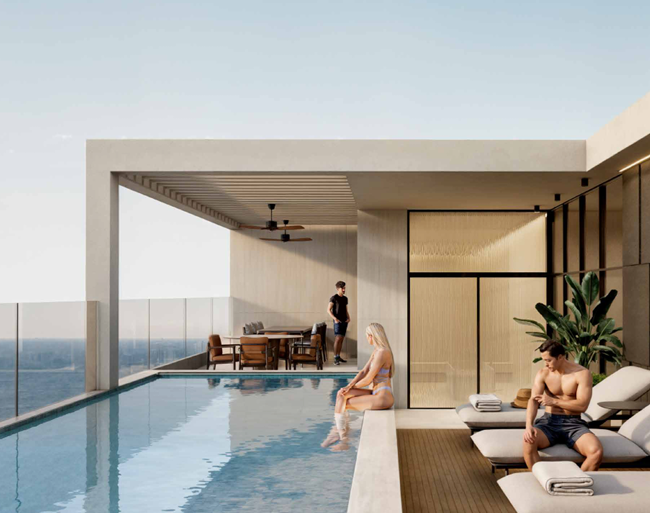 Piscina infinity en rooftop con vistas panorámicas