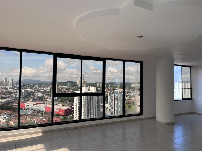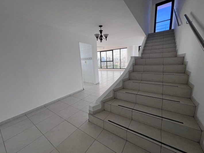 Este espectacular penthouse de dos pisos ubicado en Hato Pintado, PH Sky View, ofrece una combinación perfecta de amplitud, confort y vistas incomparables de la ciudad de Panamá. Con 335 m² de construcción, cuenta con 4 recámaras, 3 baños completos, medio baño de visitas y 4 estacionamientos, ideal para familias que buscan espacio, privacidad y una ubicación céntrica. La planta baja incluye vestíbulo, sala, comedor, cocina, tres recámaras y dos servicios sanitarios y medio. La planta alta consta de cuarto de empleada, balcón, lavandería, una recámara y dos servicios sanitarios, brindando una distribución funcional y bien pensada para separar las áreas sociales de las privadas. Uno de sus mayores atractivos son las impresionantes vistas panorámicas hacia la ciudad, donde destacan el Cerro Ancón y el Parque Metropolitano, creando una sensación única de conexión con la naturaleza en medio del entorno urbano.