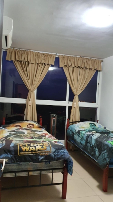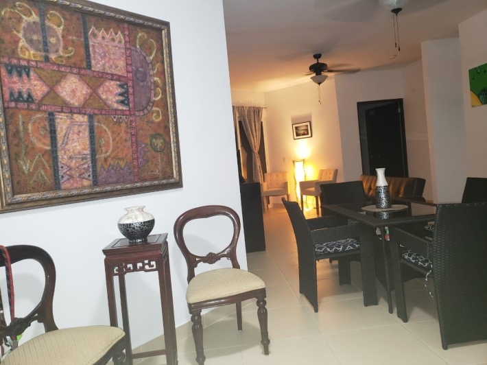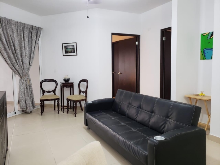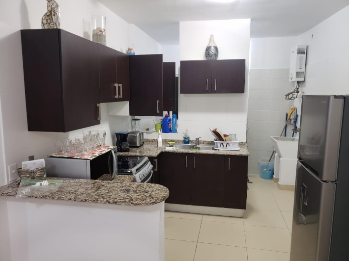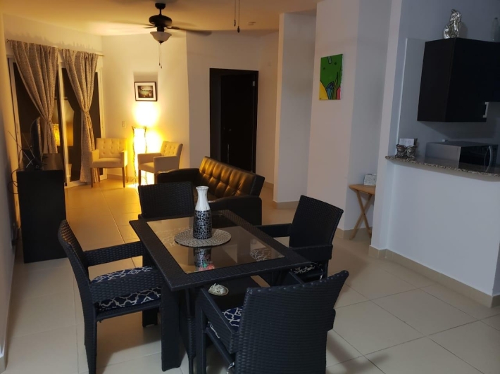 APARTAMENTO DE 120.3 METROS CUADRADOS CON SALA, COMEDOR, COCINA, LAVANDERIA, HERMOSO BALCON, 2 RECAMARAS Y 2 BAÑOS. LA RECAMARA PRINCIPAL TIENE SU BAÑO INTERNO Y WALK-IN CLOSET. LAS PAREDES SON DE BLOQUES DE CONCRETO REPELLADOS Y PINTADOS. LOS PISOS SON DE CERAMICA. LAS VENTANAS SON DE ALUMINIO Y VIDRIO CORREDIZAS. LOS MUEBLES DE COCINA SON DE MDF CON SOBRE DE GRANITO. PUERTA DE SEGURIDAD MUL-T-LOCK. BAÑOS TOTALMENTE REVESTIDOS CON AZULEJOS. PROPIEDAD EN EXCELENTES CONDICIONES.