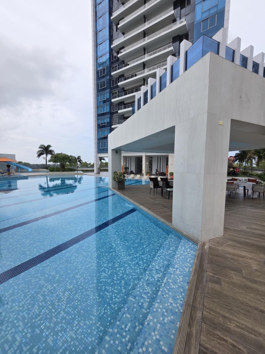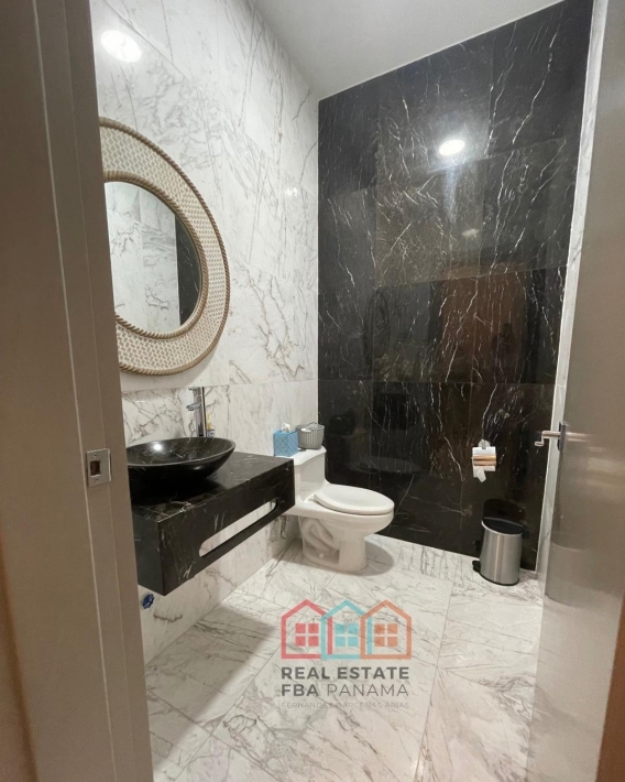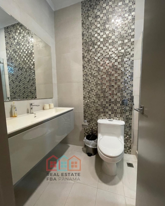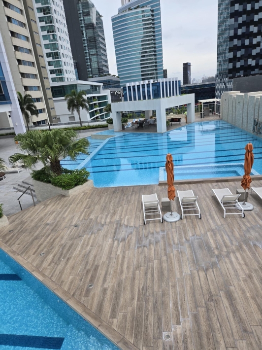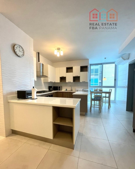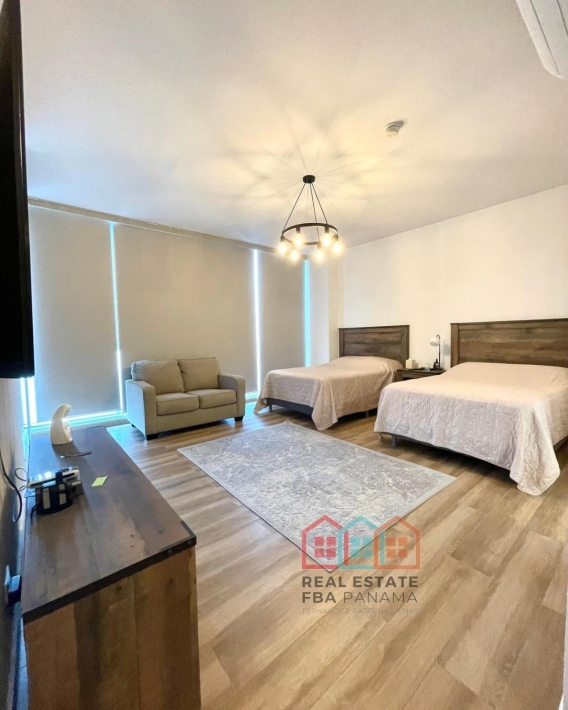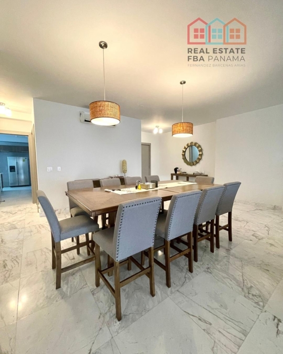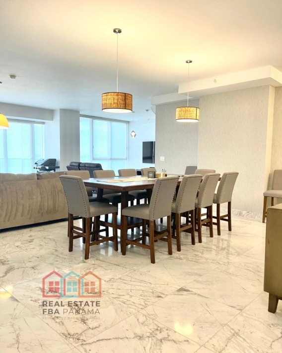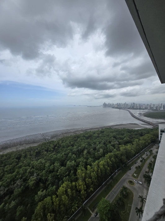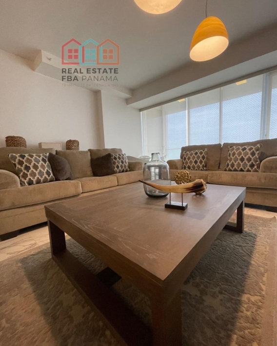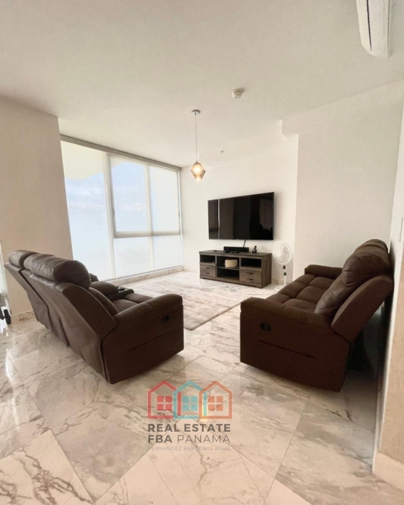 espectacular apartamento con vista al mar directa y vista a la ciudad, en lujoso edificio con pocos años de construccion, amoblado, con area social lujosa y en la mejor zona de panama, piso alto y doble altura