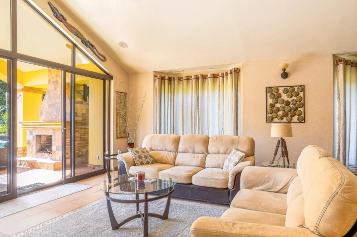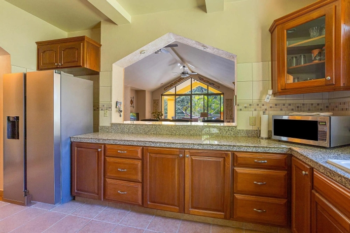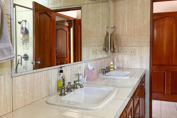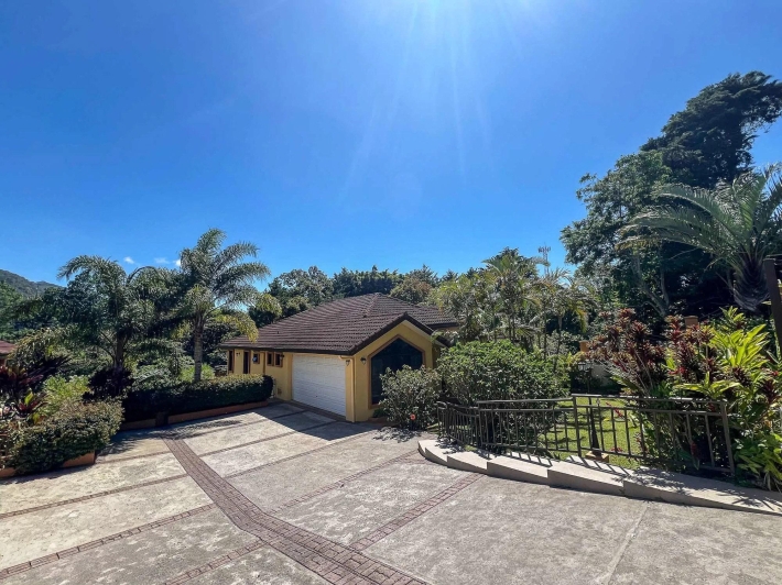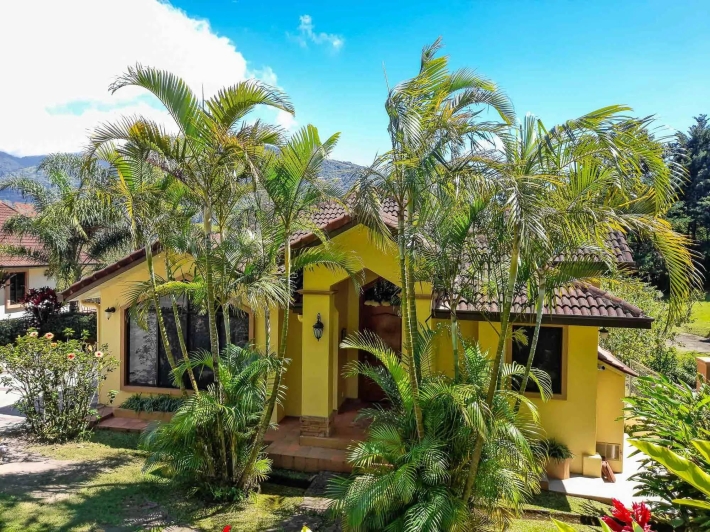 Esta casa con vista a la montaña en venta en Alto Lino, Boquete, cuenta con 339 m² de construcción en un terreno inclinado de 777 m², ubicada a solo minutos del centro. La propiedad está diseñada en dos niveles, ofreciendo un equilibrio entre privacidad, funcionalidad y flexibilidad de alquiler. El nivel superior, la residencia principal, incluye una sala de estar y comedor bien definidos, llenos de luz natural. Grandes puertas de vidrio se abren directamente a una amplia terraza con chimenea, ampliando el espacio habitable al aire libre y enmarcando las vistas a la montaña. La cocina ocupa su propio espacio e incluye un desayunador ideal para el día a día. Este nivel también cuenta con una espaciosa recámara principal con baño privado y acceso directo a la terraza, además de un medio baño para invitados. Un garaje para dos autos incluye estacionamiento cubierto y trastero. El nivel inferior funciona como un apartamento independiente con entrada privada. Incluye una recámara, baño privado, cocineta y una pequeña sala de estar. Este nivel se abre a un amplio patio privado con vistas a la montaña, lo que permite que la unidad se sienta independiente en lugar de secundaria, a la vez que preserva la privacidad de la residencia principal. El vendedor incluye los muebles en la venta y la propiedad se beneficia de una exención de impuestos vigente hasta el 7 de septiembre de 2027. Alto Lino se encuentra a lo largo de la pintoresca carretera de circunvalación interior de Boquete y es conocido por su altitud, su vegetación y su rápido acceso al pueblo. Desde la propiedad, se puede llegar al centro de Boquete en aproximadamente 2 a 5 minutos en coche.