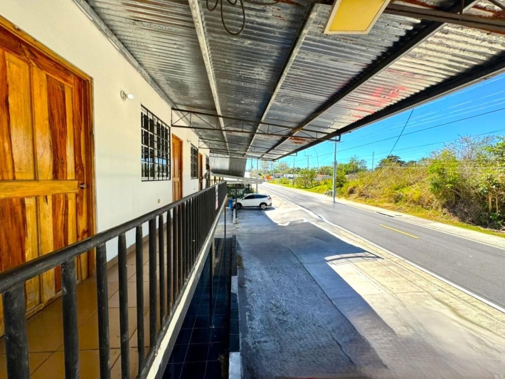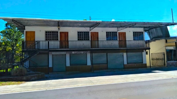 Edificio Comercial con Apartamentos en Venta Ubicación: Nueva California, Volcán – Vía Principal hacia Río Sereno Excelente oportunidad de inversión en una ubicación estratégica con alto tránsito vehicular y gran visibilidad comercial. Ubicación Sobre la vía principal hacia Río Sereno Zona en crecimiento Fácil acceso y excelente exposición comercial Locales Comerciales (Planta Baja) El edificio cuenta con: 3 locales comerciales en la parte frontal Ideales para restaurante, cafetería, mini súper, oficina o cualquier emprendimiento. Cada local dispone de: Agua y electricidad Área de cocina Cuarto pequeño de almacenamiento 2 baños Espacios listos para operar Apartamentos La propiedad incluye: 4 apartamentos en la parte superior 2 apartamentos adicionales en la parte posterior del edificio con Área de lavandería Los 4 apartamentos superiores cuentan con: 1 recámara 1 baño Sala y cocina en concepto abierto Servicios básicos (agua y electricidad) Agua caliente Infraestructura y Extras: Tanque de reserva de agua Bomba de presión Sistema séptico Servicios completamente funcionales Detrás del edificio pasa una pequeña quebrada, lo que aporta un entorno natural agradable y mayor frescura al área. Propiedad ideal para inversionistas que buscan generar ingresos combinados por alquiler comercial y apartamentos, con excelente potencial de retorno.