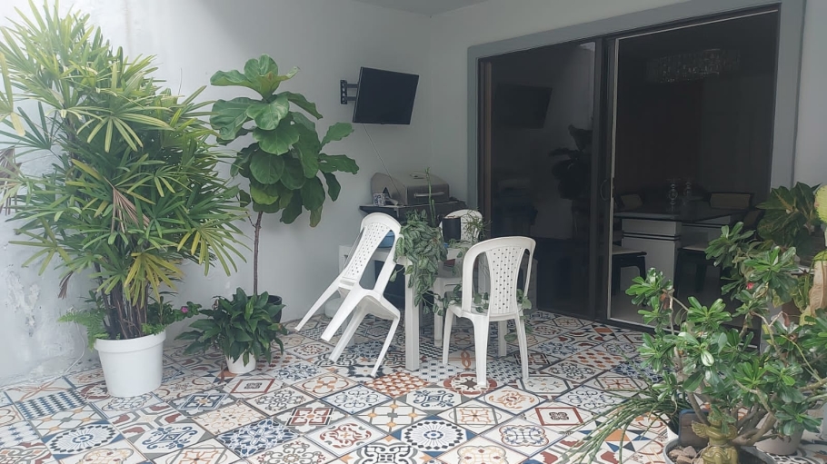 Área semiabierta con terraza posterior, portal, lavandería y estacionamiento para dos autos
