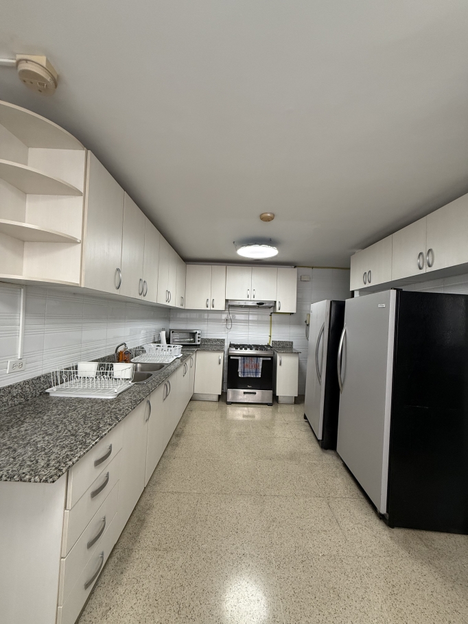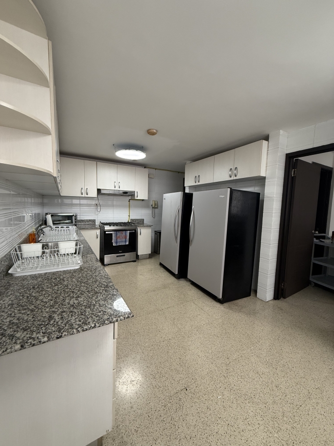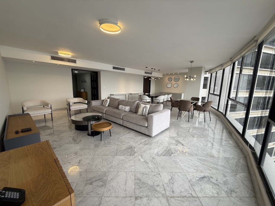 Se ofrece en alquiler amplio y elegante apartamento de 250 m², ubicado en piso alto, lo que garantiza excelente iluminación natural y agradables vistas.