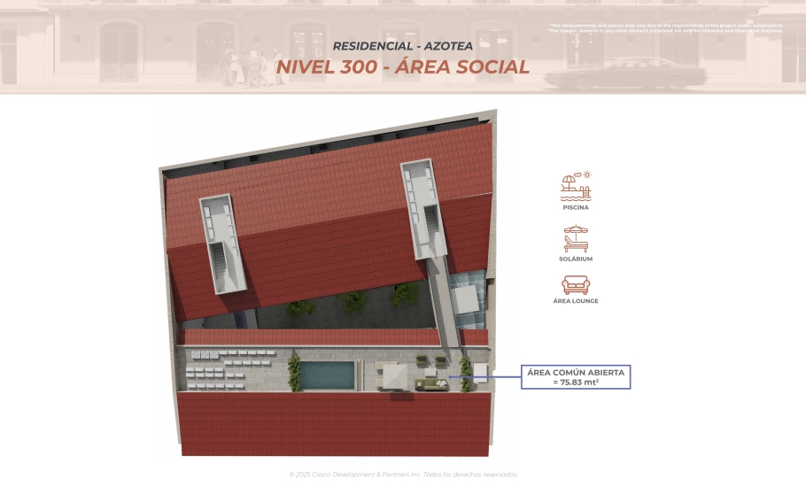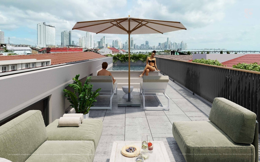 Azotea de Ensueño: Disfruta de una piscina, solárium y área lounge con vista panorámica a la ciudad y al mar.