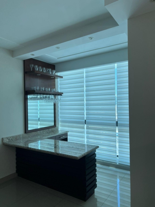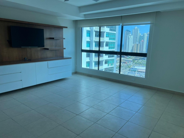 Apartamento de 224 m² en Pacific Bay, San Francisco, piso alto con vista a la ciudad y al mar. Cuenta con 3 recámaras con baño privado, 2 estacionamientos, sala-comedor amplia, cocina cerrada, lavandería y cuarto y baño de servicio. Incluye línea blanca. Edificio con solo 2 apartamentos por piso, área social, piscina, gimnasio y seguridad 24/7. Excelente ubicación cerca de Vía Israel y Corredor Sur.