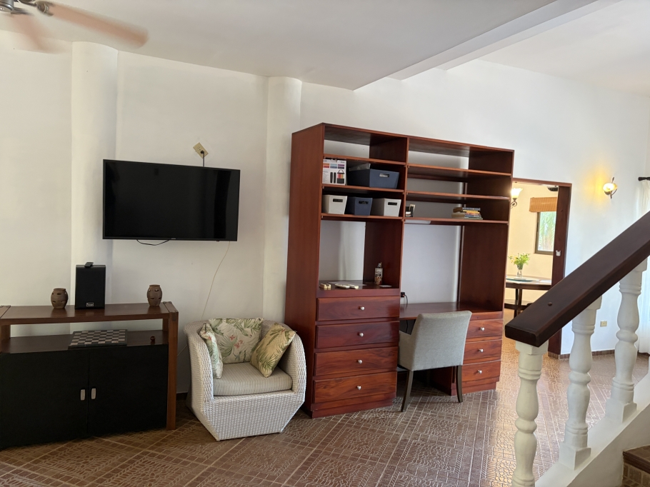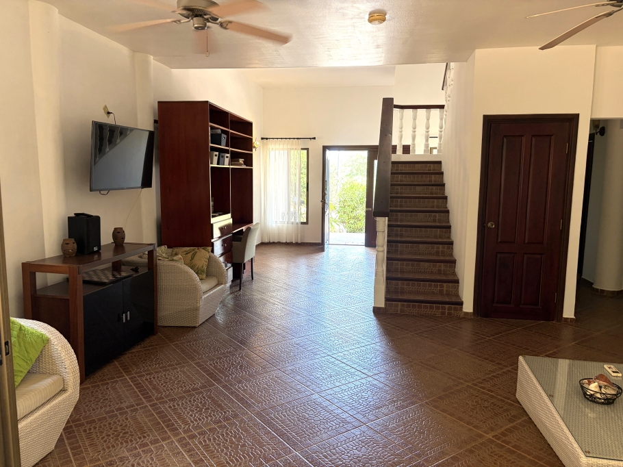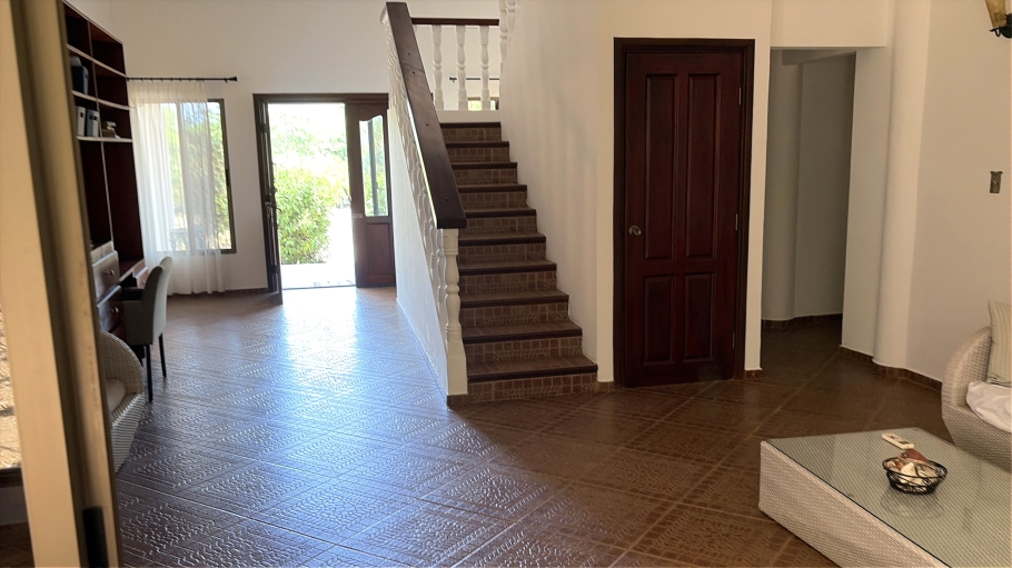 Situada en la segunda hilera de viviendas de Rincón Beach, a solo 79 pasos de la playa, esta villa de dos plantas cuenta con 4 dormitorios y 4 baños (3 amplios dormitorios con baño y otro más pequeño para el personal doméstico o como habitación de invitados adicional).