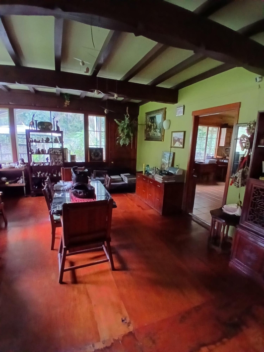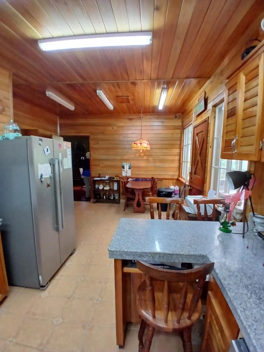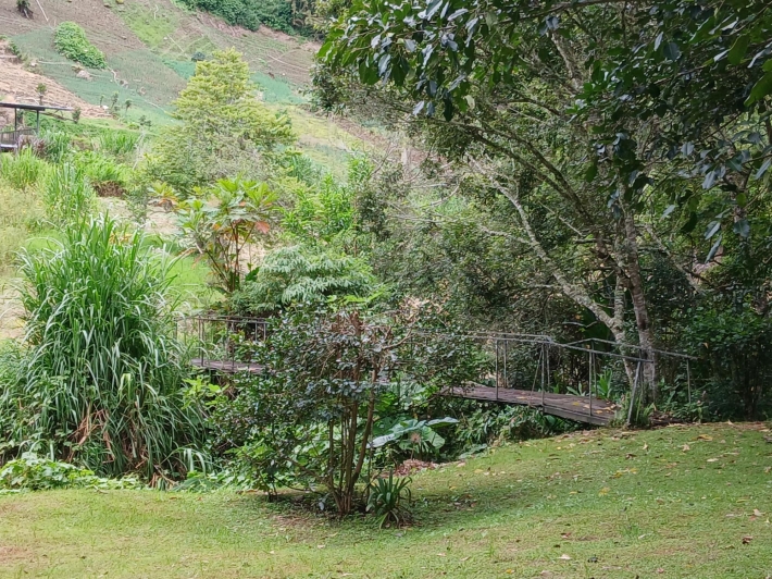 En el barrio de Nueva Suiza, que hace honor a su nombre, entre Cerro Punta y Volcán, se encuentra su oasis personal. En una superficie de 13 630 m² cuidadosamente diseñada como un parque, con árboles centenarios, plantas exóticas y numerosos árboles frutales, así como un encantador estanque, a una agradable y refrescante altitud de 1750 metros sobre el nivel del mar, nada se interpone en el camino de la realización de sus sueños. Tanto si es un apasionado de la jardinería, como si busca tranquilidad lejos del ajetreo diario en un entorno apacible y silencioso, una casa de vacaciones o un hogar para toda la familia, un punto de partida para largas caminatas por los alrededores o si desea crear un refugio excepcional: ¡Aquí tiene su oportunidad! En la propiedad hay una acogedora casa de madera con dos dormitorios, un amplio salón con chimenea, una cocina bien equipada y amplias terrazas para disfrutar de las vistas al campo. Separado solo por una zona cubierta con una chimenea exterior, hay un pequeño apartamento con un dormitorio. Además, hay numerosas dependencias en el terreno completamente vallado, como un gran taller, una cocina exterior y varios pabellones y establos para animales pequeños. El edificio y el terreno están cuidados con mucho cariño. Se accede a la propiedad desde la carretera asfaltada a través de un camino de grava de 300 m, a solo 15 minutos en coche del centro de Volcán, donde encontrará todo lo necesario para vivir. David, la segunda ciudad más grande de Panamá, con su propio aeropuerto, se encuentra a aproximadamente una hora.